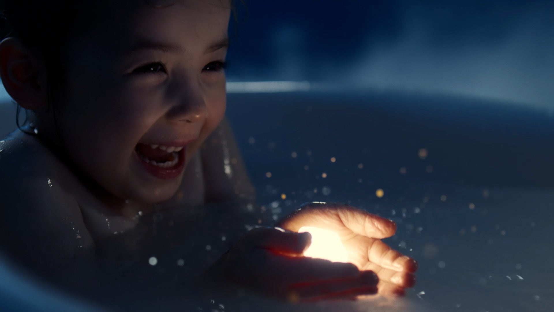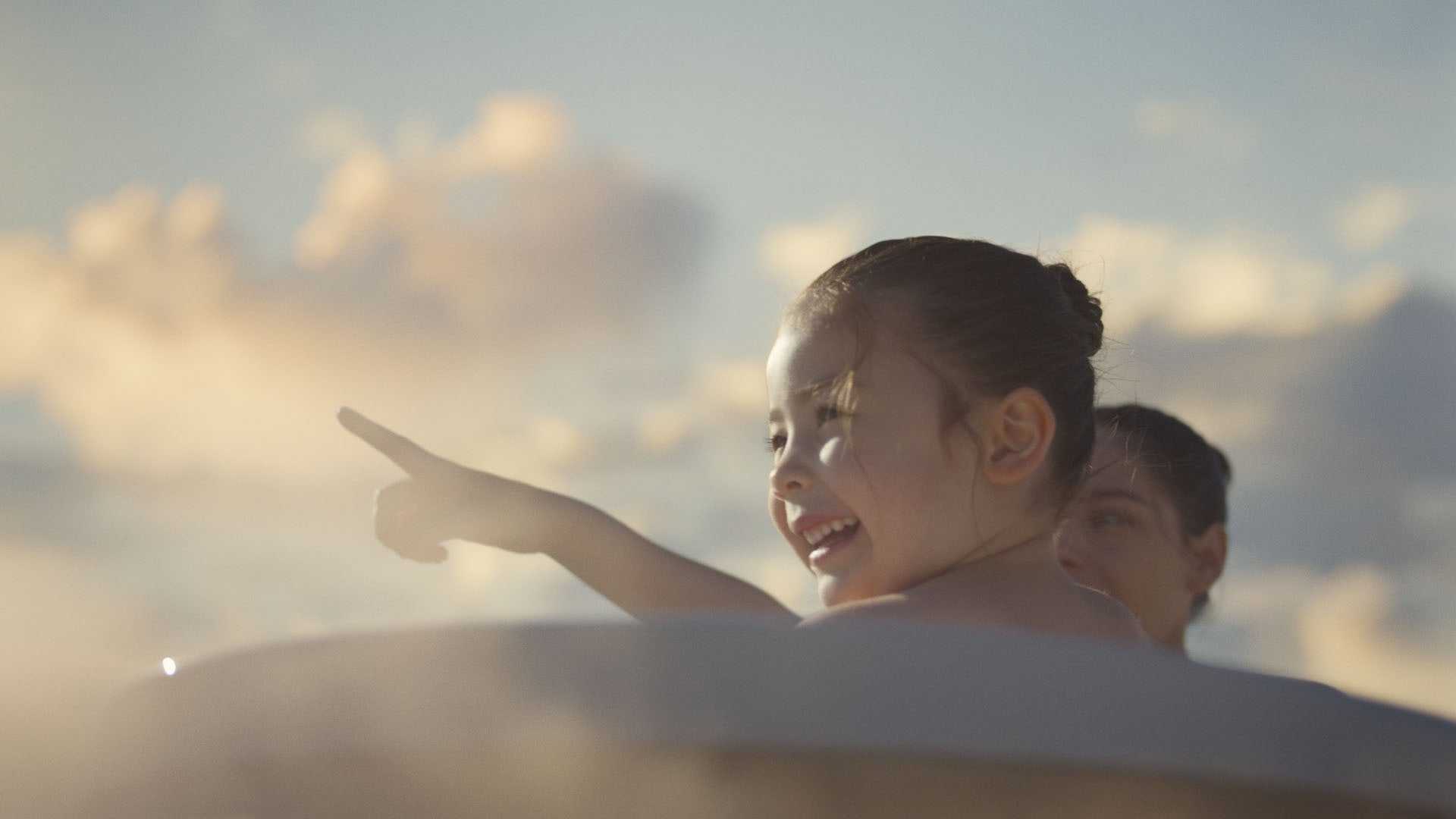 本CMでは、子どもがおはなしする誰もみたことのない、聞いたことのない、夢のようなエピソードをいくつも投影しています。雲に触れてみたらどんな感じだろう、流れ星が落ちてきたらどんな輝きだろう、と撮影スタッフは模索しながらの撮影でしたが、娘役の女の子には、そのファンタジーの世界がまるで見えているかのようで、終始笑顔で、現場の大人たちを魅了していました。