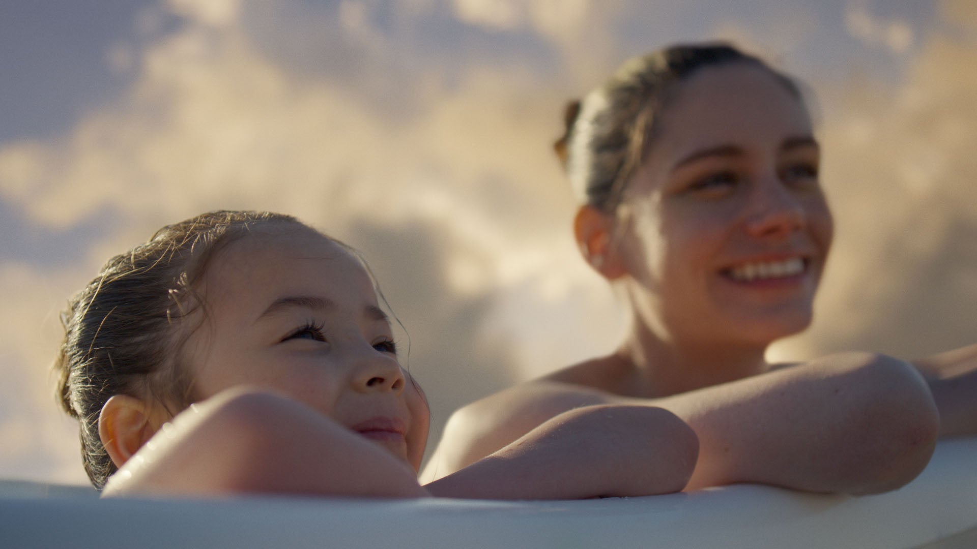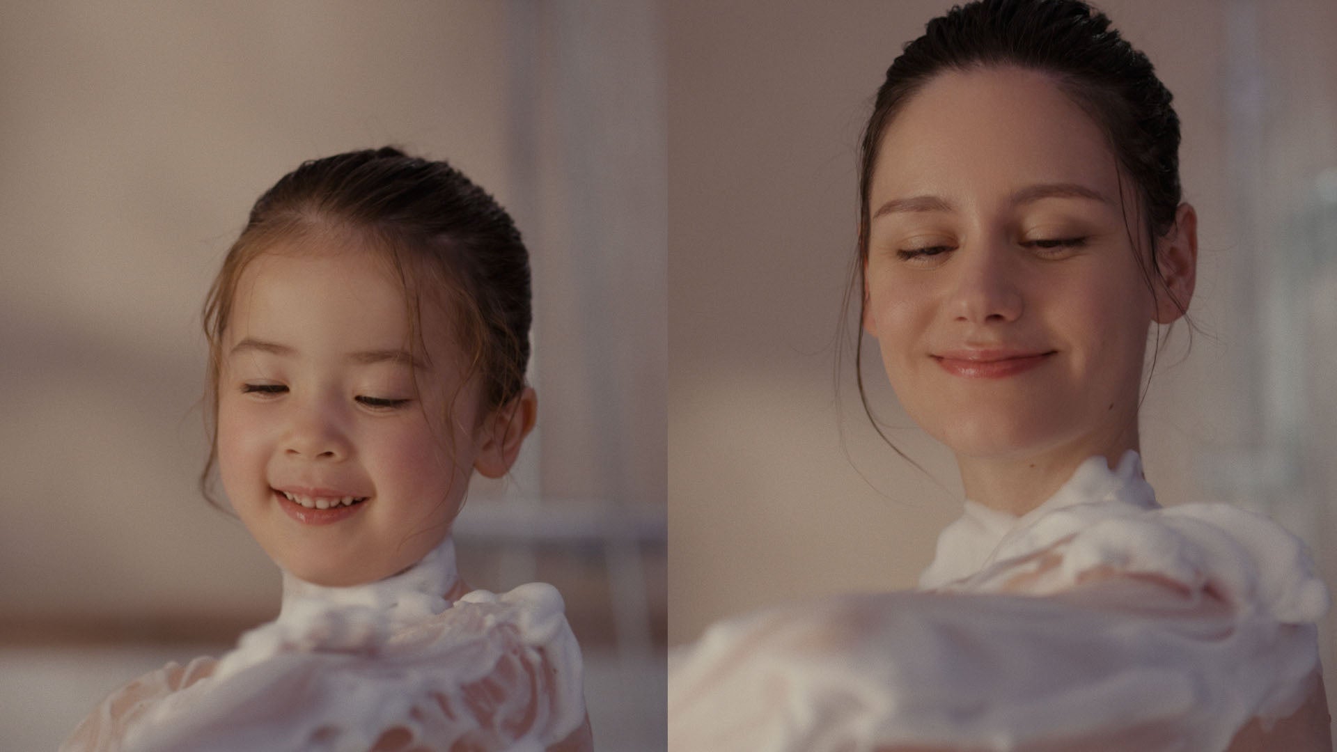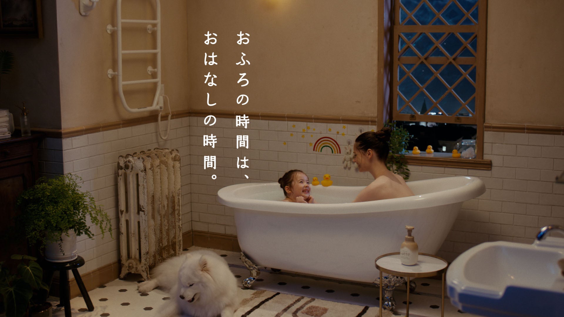 親子で一緒に使えるボディソープの発売を機に公開する新CM「雲の中のお風呂」篇では、「おふろの時間は、おはなしの時間。」をテーマに、ママと子どもが空に浮かぶバスタブに乗って、一緒にお話しながら心地よい時間を楽しむ様子を描いています。お風呂という空間では子どもの話が弾んだり、距離が近いからこそ普段以上に会話が生まれることがよくあります。そんな親子の温かな時間を「マー&ミー」は応援したい、という想いをこのCMに込めました。