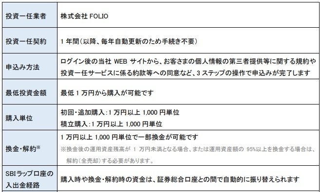 ■「SBIラップ」第1弾 SBI証券×FOLIOの投資一任サービスの主な特徴