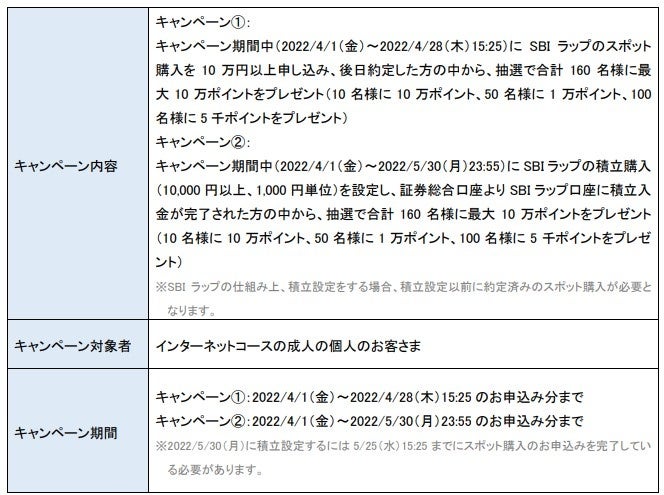 =最大20万ポイントが当たるSBIラップスタート記念キャンペーン!=