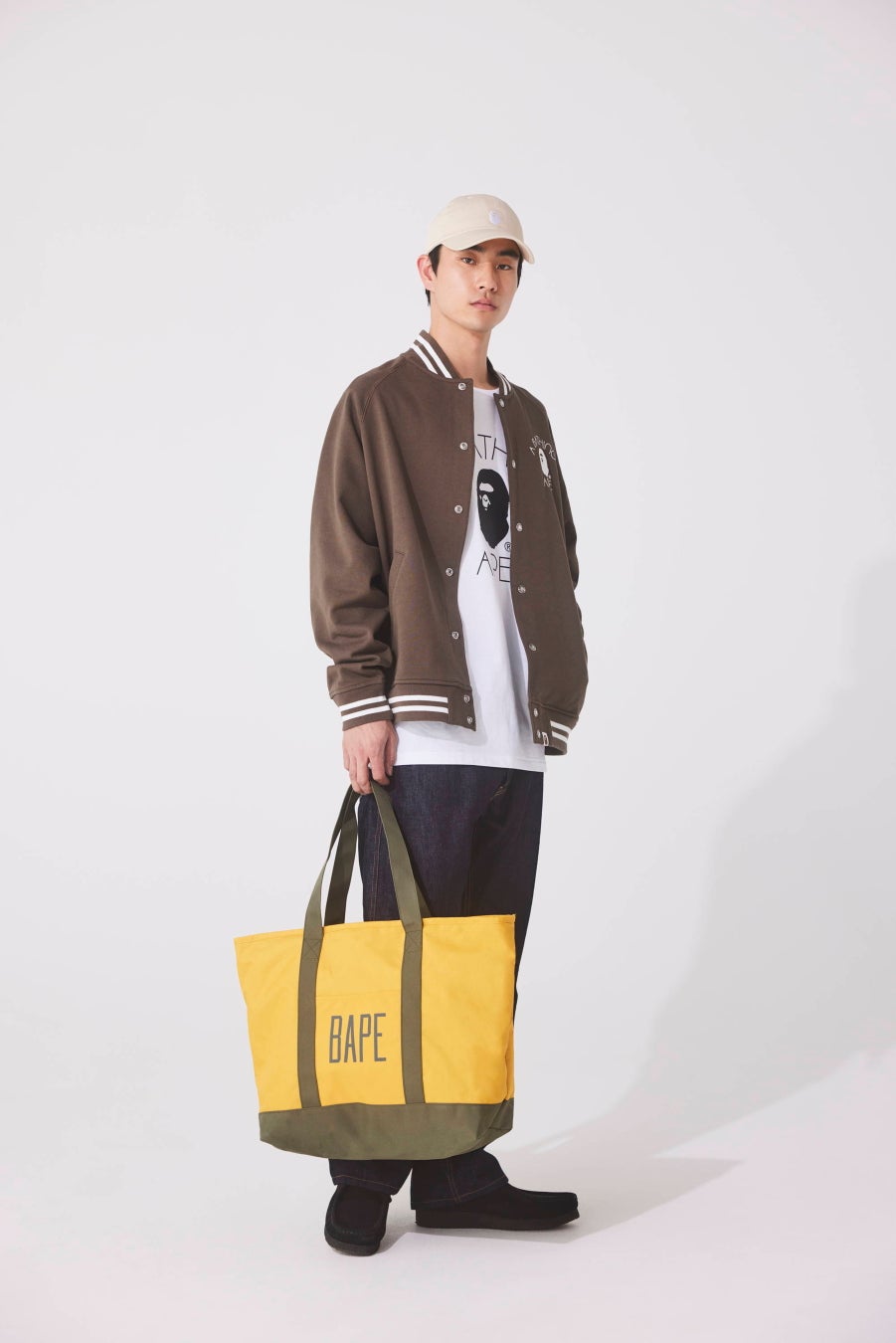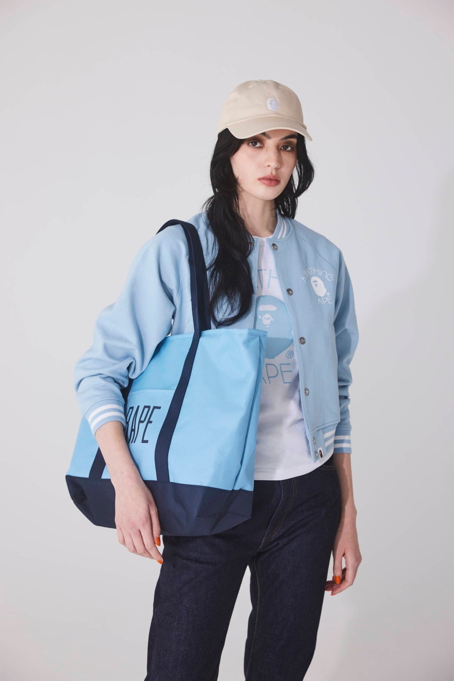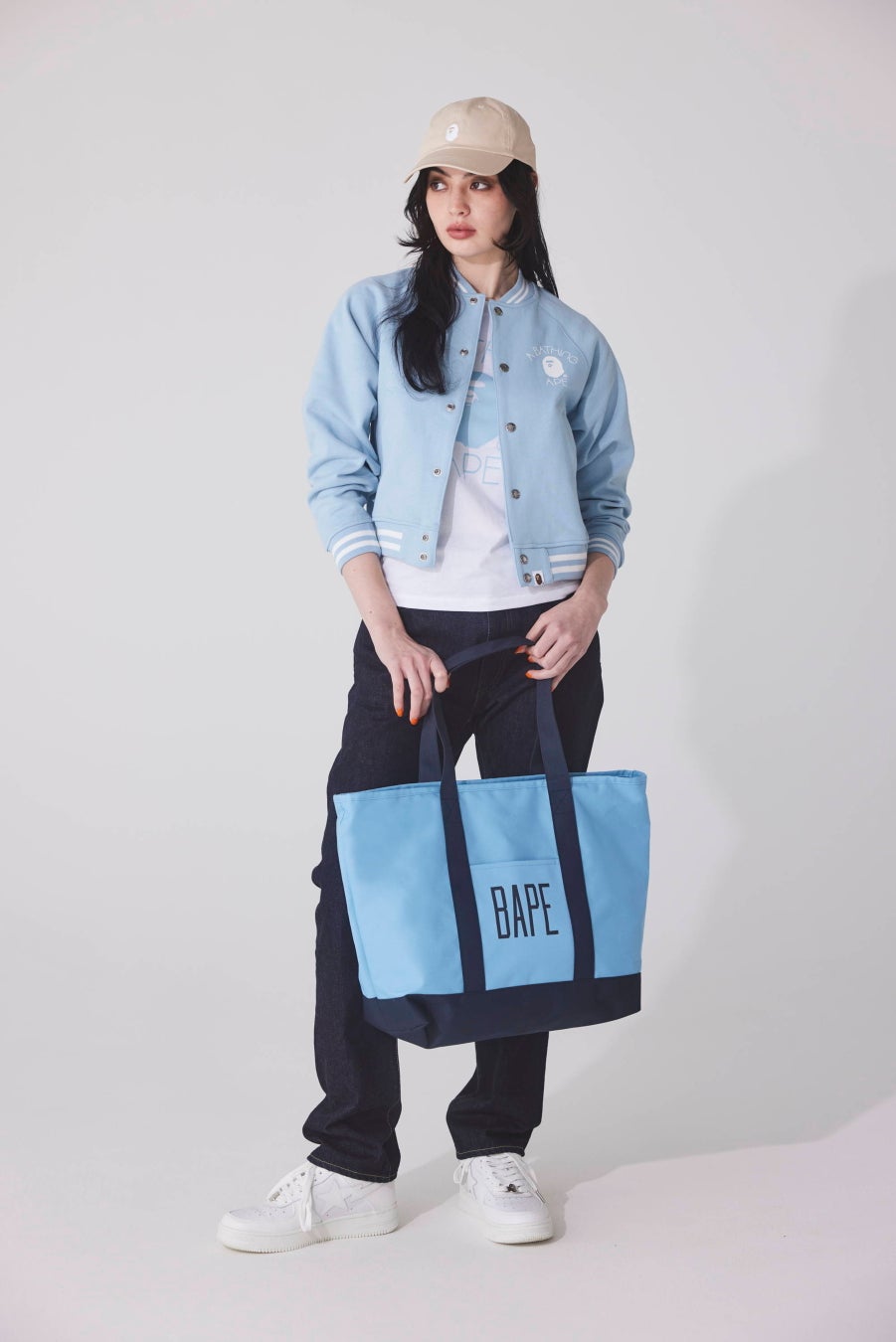 「BAPE® ver.」は、スウェットバーシティジャケット、Tシャツ、キャップ、トートバッグと、定番のBAPE®︎アイテムからなる4点セット。