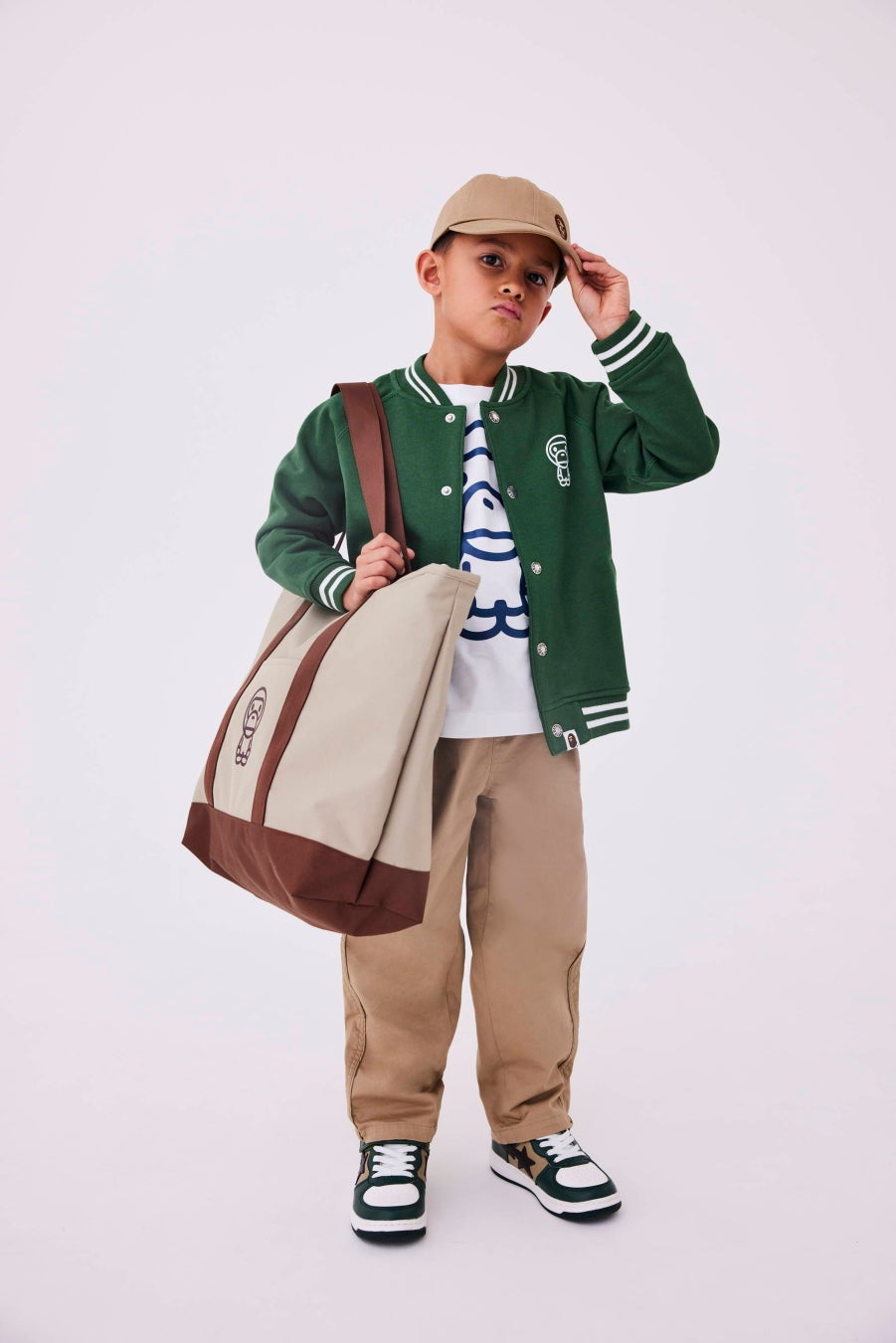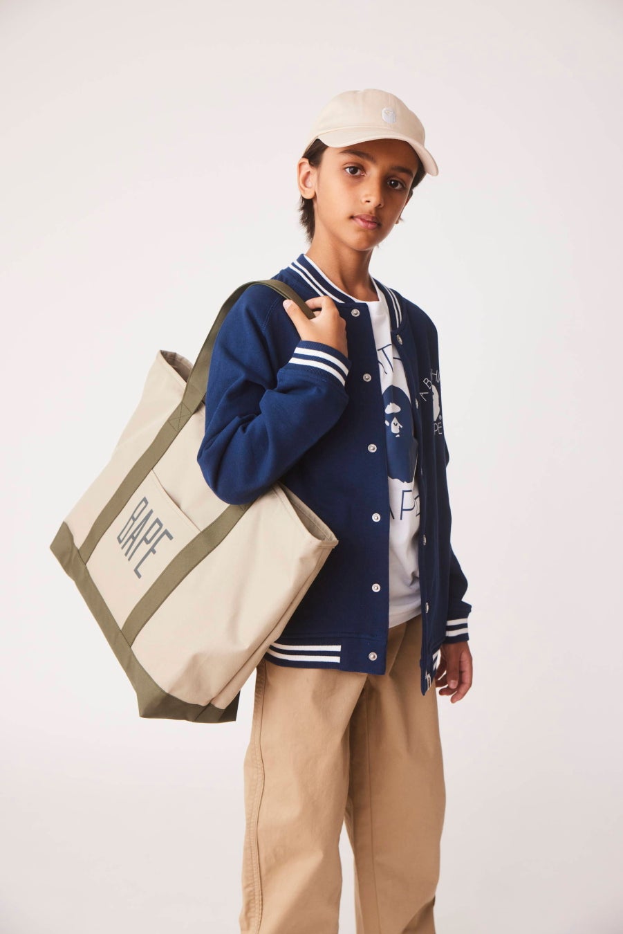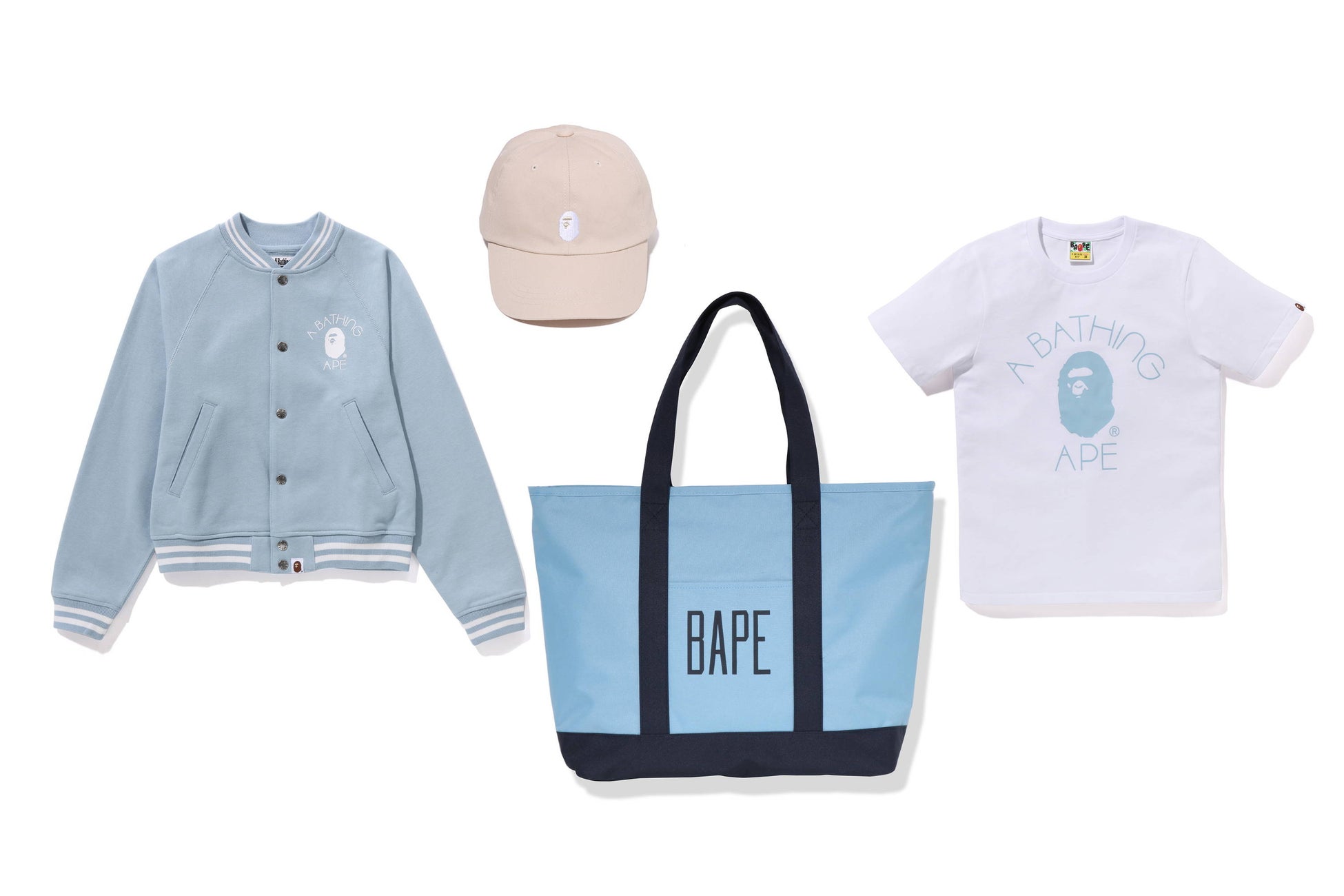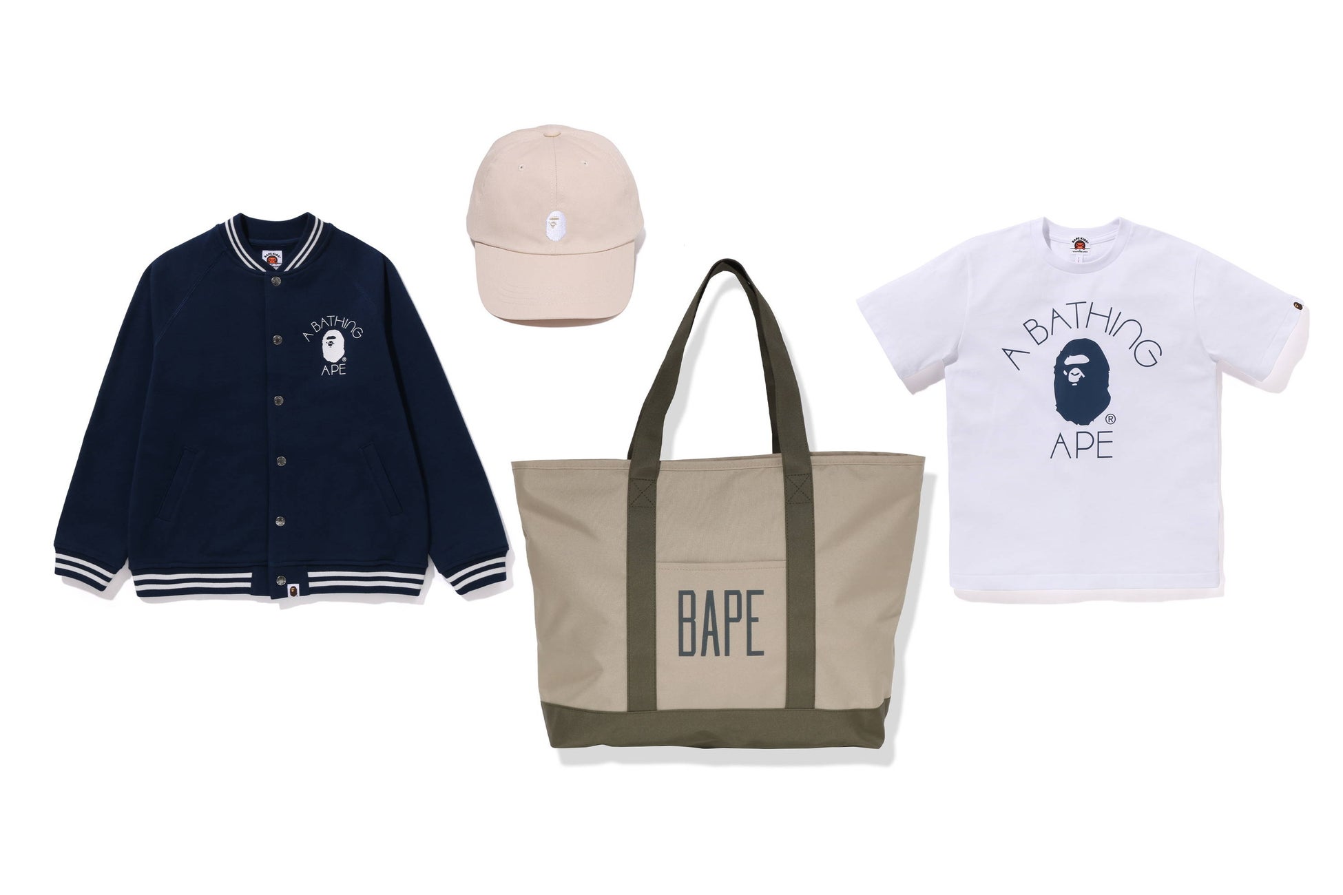 「BAPE® ver.」は、スウェットバーシティジャケット、Tシャツ、キャップ、トートバッグと、定番のBAPE®︎アイテムからなる4点セット。