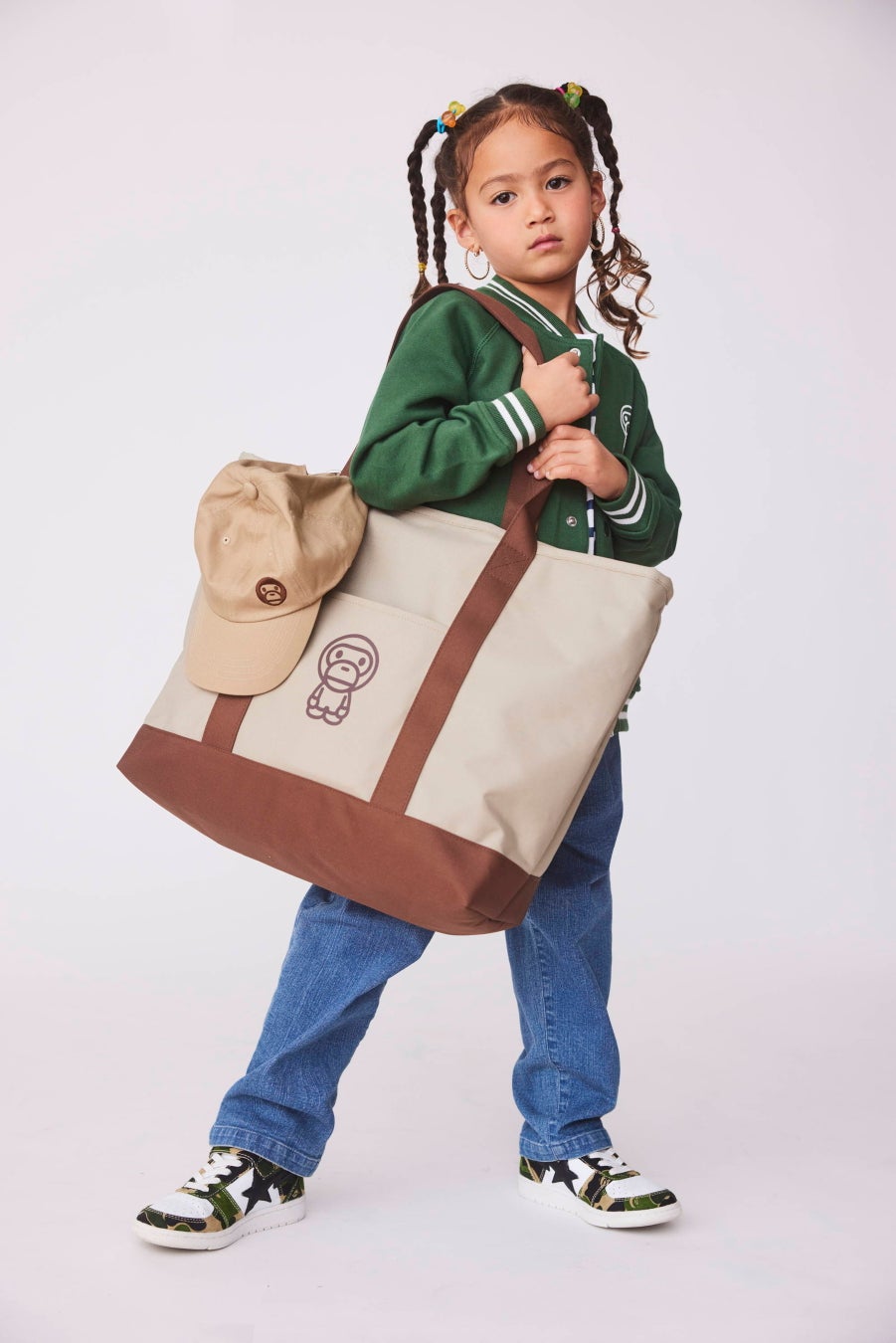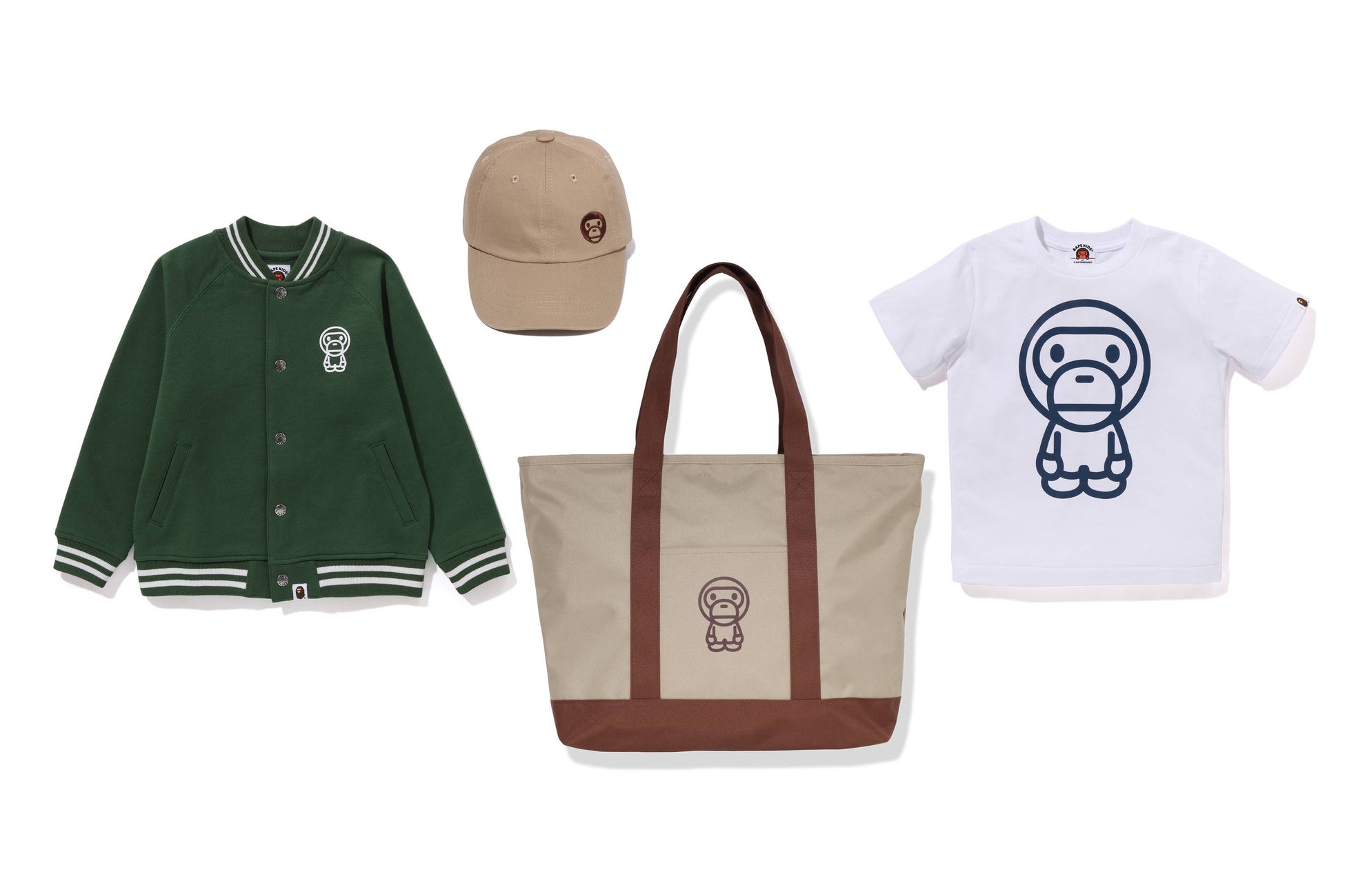 「BABY MILO® ver.」は、スウェットバーシティジャケット、Tシャツ、キャップ、トートバッグに、BABY MILO®︎のグラフィックを落とし込んだ4点セット。