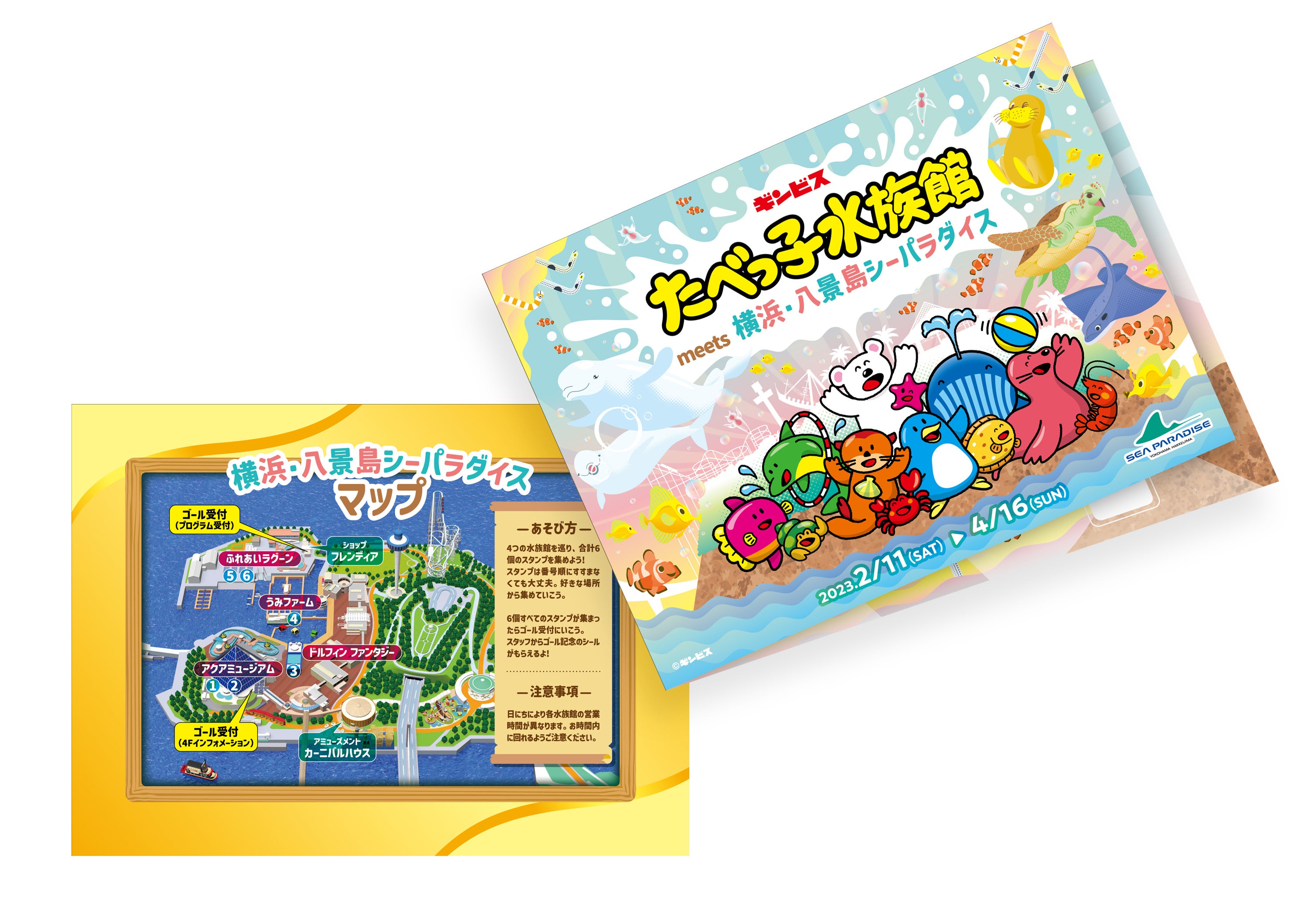 イベント期間限定で、水族館やアトラクションとあわせて『たべっ子水族館meets横浜・八景島シーパラダイス』のスタンプラリー台紙がセットになったお得なチケットも販売を予定しております。
