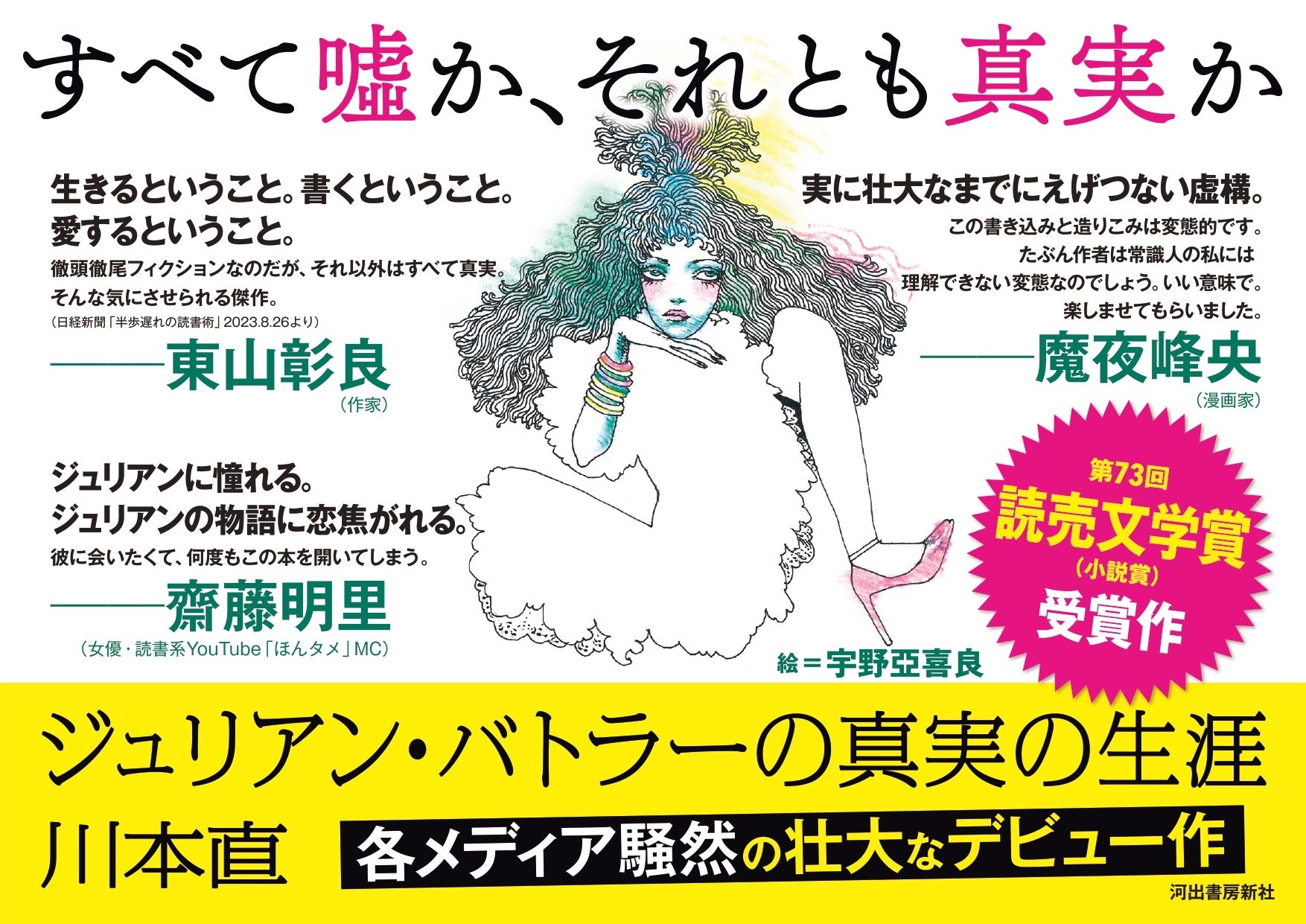 『ジュリアン・バトラーの真実の生涯』は、2021年単行本刊行直後より、多数の新聞、雑誌、本の目利きたちから異口同音に“傑作”と称され、ついには著者デビュー小説で第73回読売文学賞(小説賞)受賞という異例の快挙を達成。