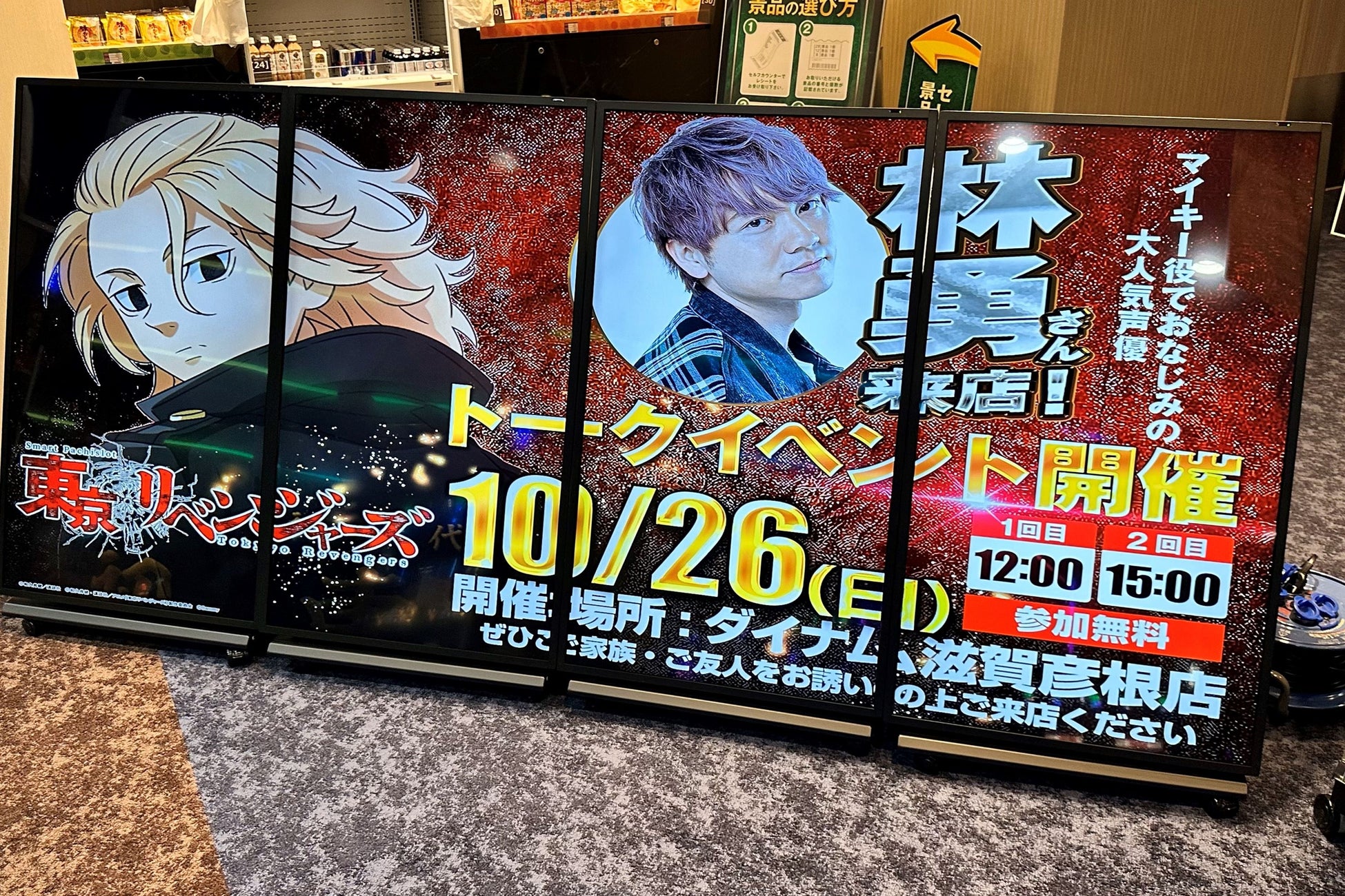 全国46都道府県にパチンコホールを展開する株式会社ダイナム(本社:東京都荒川区、代表取締役:保坂明)は、2025年10月26日(日)、ダイナム滋賀彦根店屋外特設ステージにおいて、人気アニメ「東京リベンジャーズ」の佐野万次郎(マイキー)役の声優を務める林 勇氏を招いたスペシャルトークイベントを開催いたしました。本イベントは、パチンコ・パチスロを遊技したことのない若年層に向けた、来店・遊技のきっかけづくりを目的としており、当日は約150人のファンにご来場いただきました。