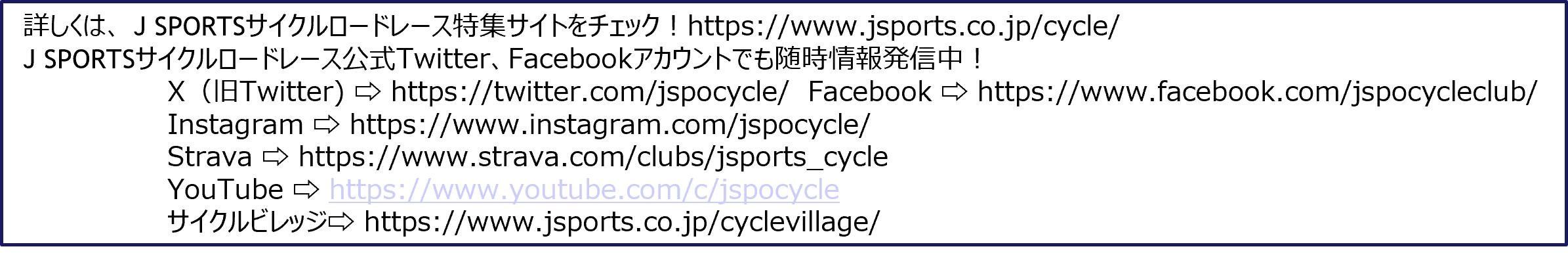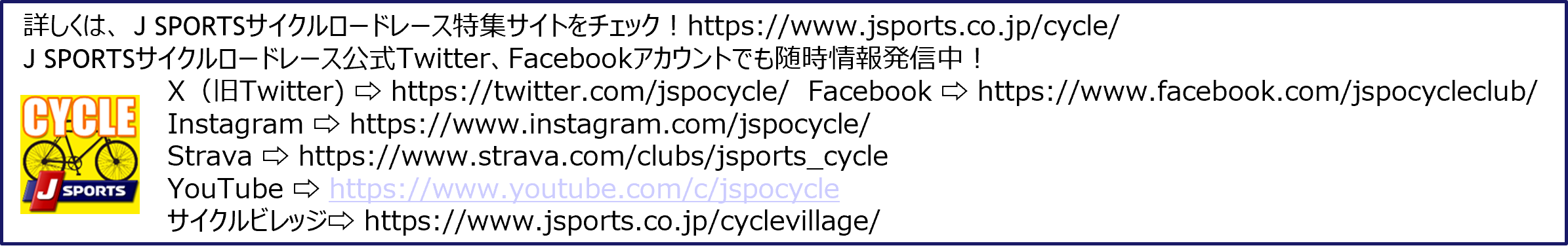 J SPORTSサイクルロードレース公式Twitter、Facebookアカウントでも随時情報発信中!