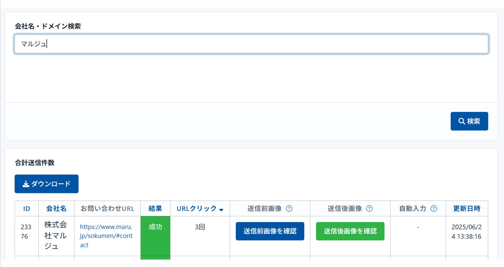 4.8万円で4,000社にアプローチ、AIがフォームDMを自動送信するMIKOMERU(ミコメル)、自動送信ログ検索機能を追加し、問合せ対応時の情報確認がスムーズに出来るようになりました。