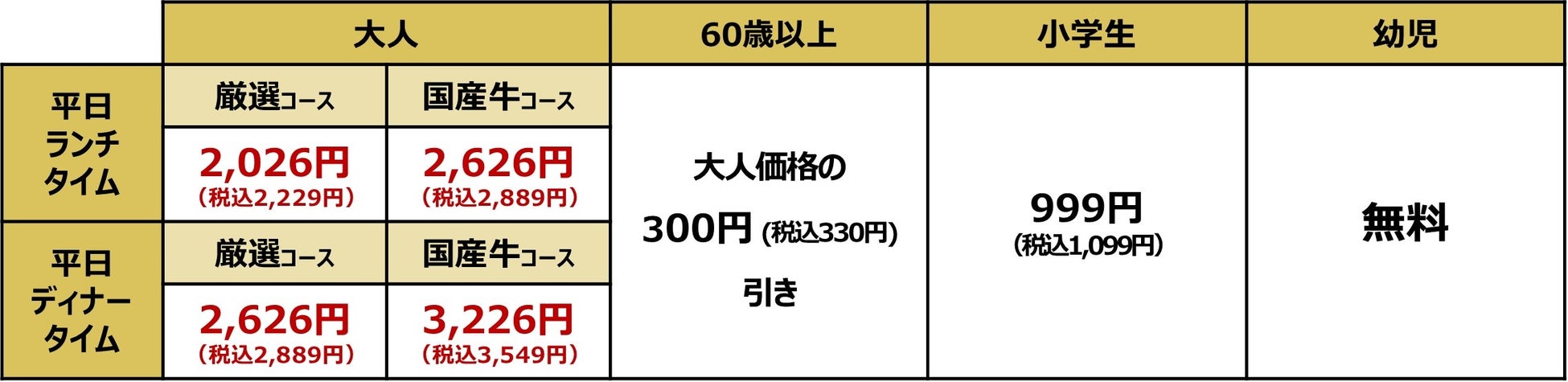 1月14日(火)~1月17日(金)の平日4日間限定で厳選豚コースと国産牛コースが対象。