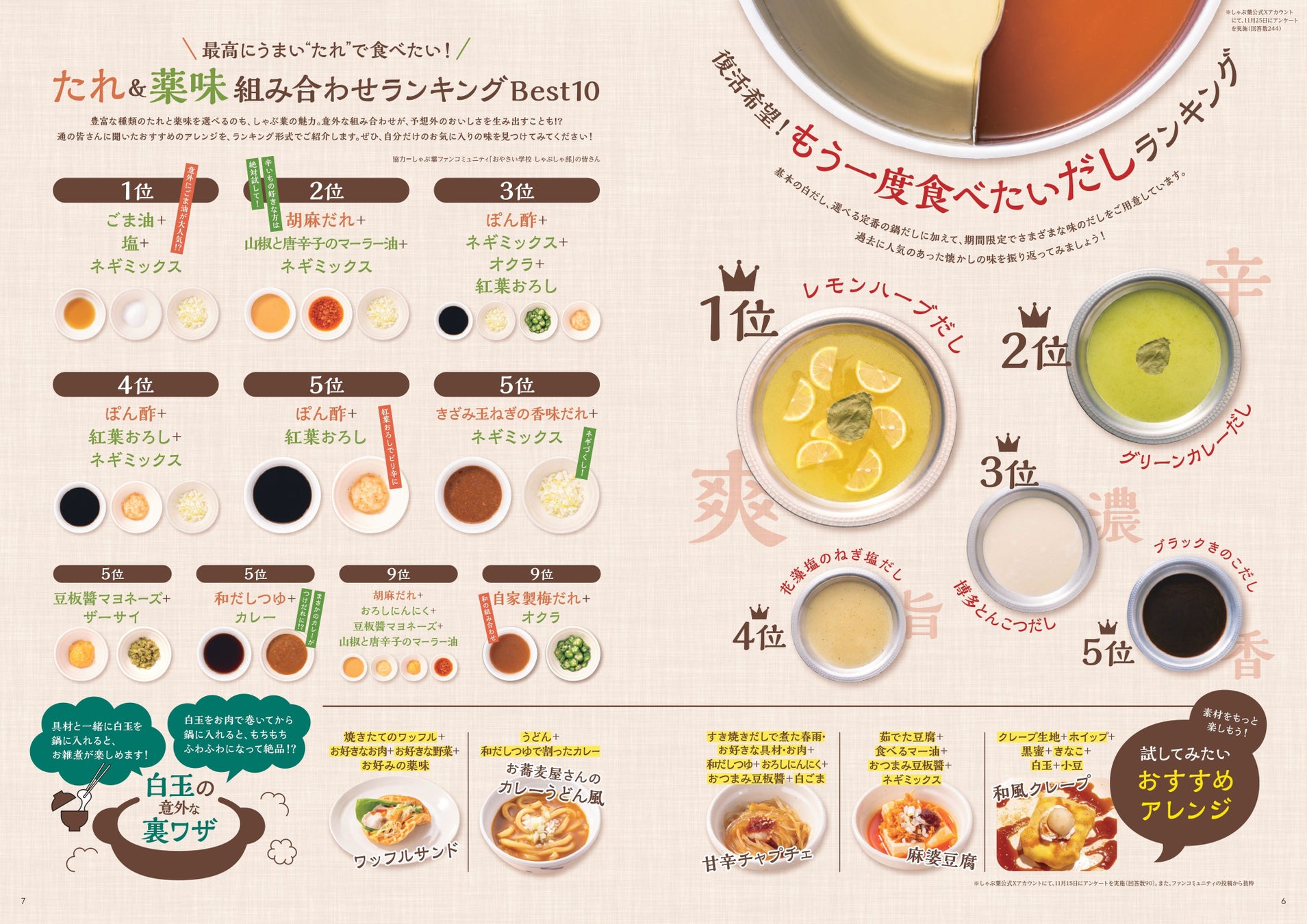 この冊子でしか知ることのできないしゃぶ葉のトリビアや、たれ×薬味の人気ランキング・しゃぶ葉ユーザーのジェーン・スーさん/堀井美香さんのインタビューのほか、お得なクーポン3枚を掲載。