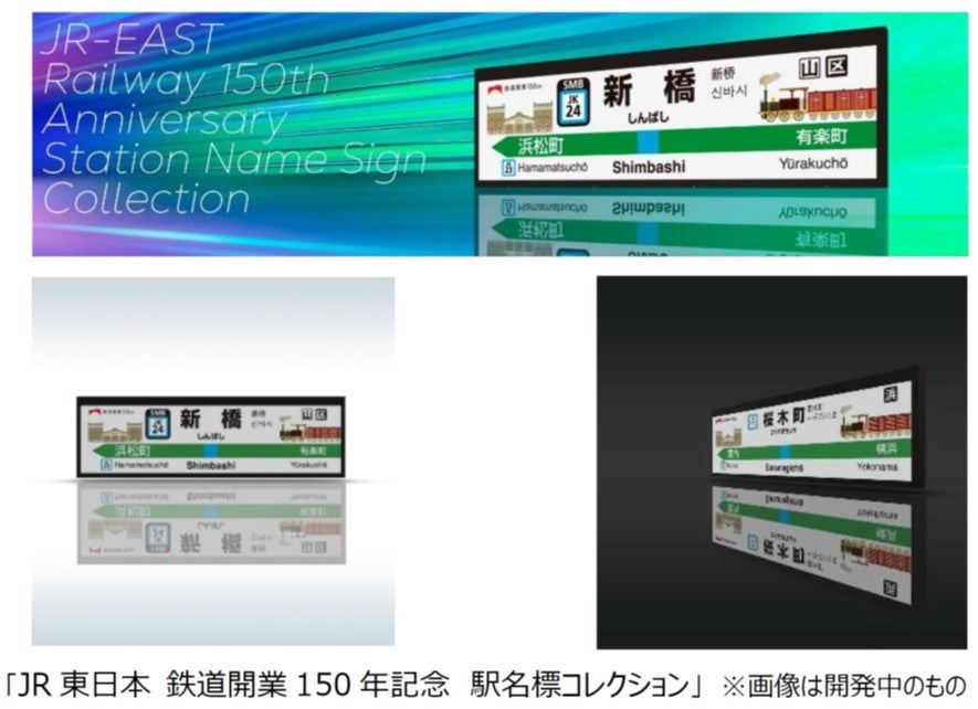 「鉄道開業150年記念駅名標」を、それぞれ3D化した動画をNFT化