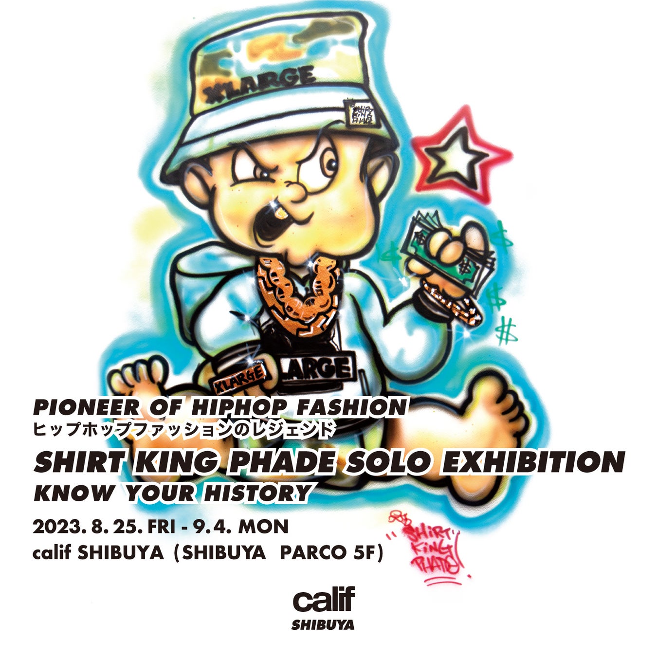 【calif SHIBUYA】ヒップホップファッションのレジェンドSHIRT KING PHADE SOLO EXHIBITION “KNOW YOUR HISTORY” を8/25~9/4の期間開催