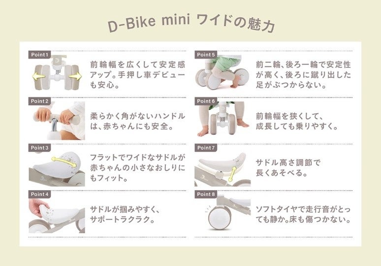 株式会社赤ちゃん本舗(本社:大阪市中央区 https://www.akachan.jp)は、アイデス株式会社(本社:東京都台東区)の10ヵ月頃から長く遊べる「D-Bike mini ワイド(ディーバイク ミニ ワイド)」から、アカチャンホンポ限定デザインの『クレッセントベージュ』を2025年3月28日(金)より全国のアカチャンホンポとオンラインショップ(https://shop.akachan.jp)にて発売いたします。
