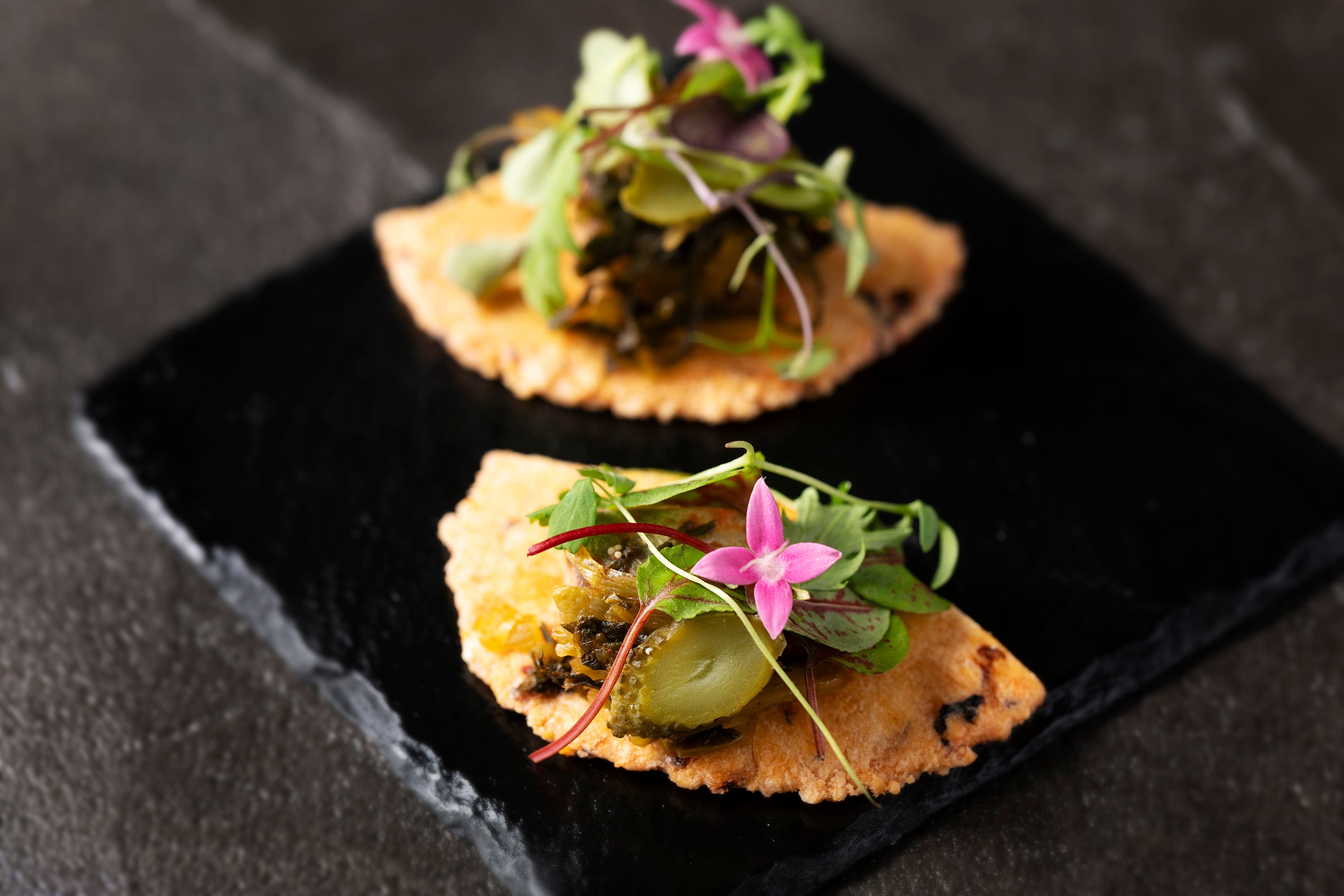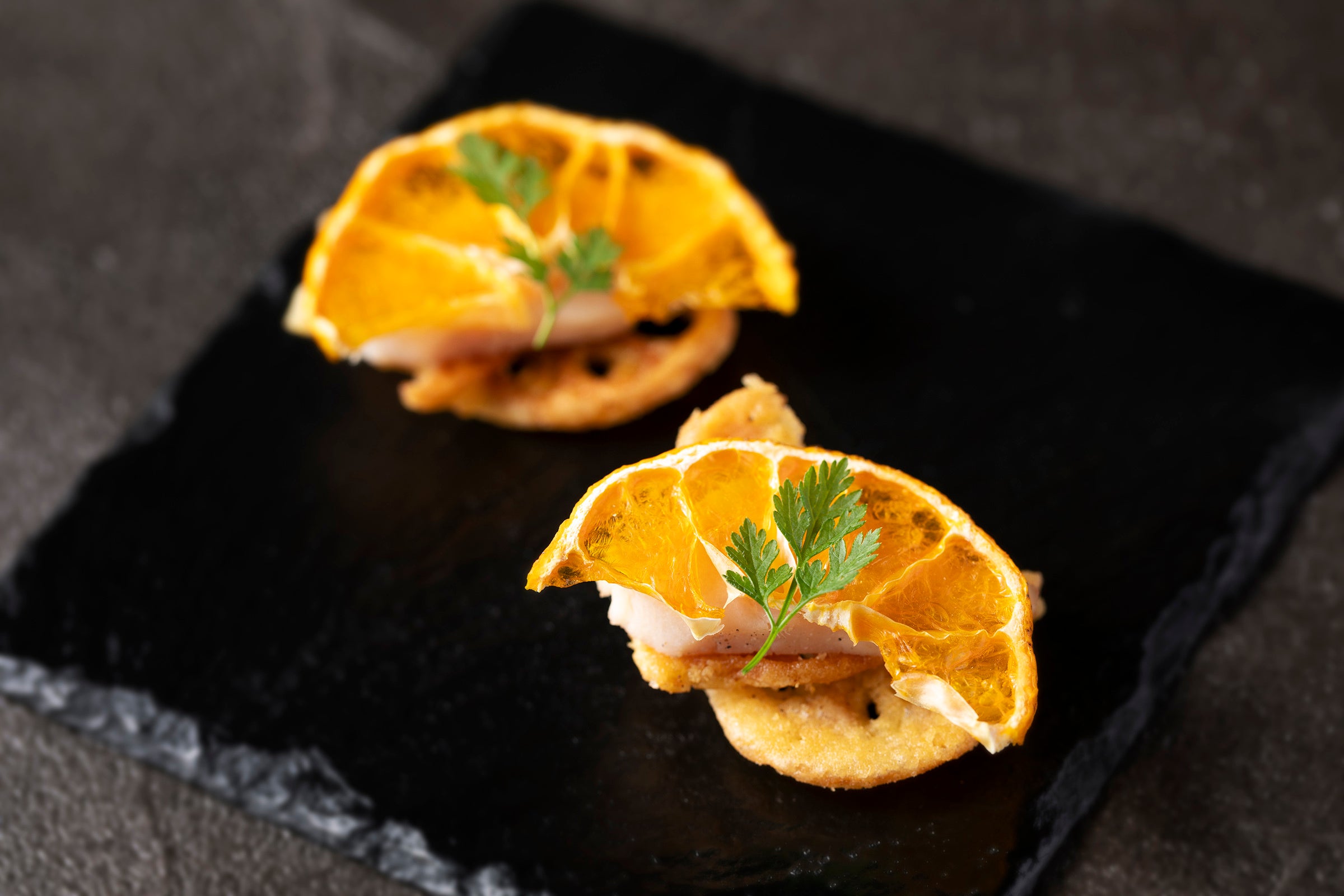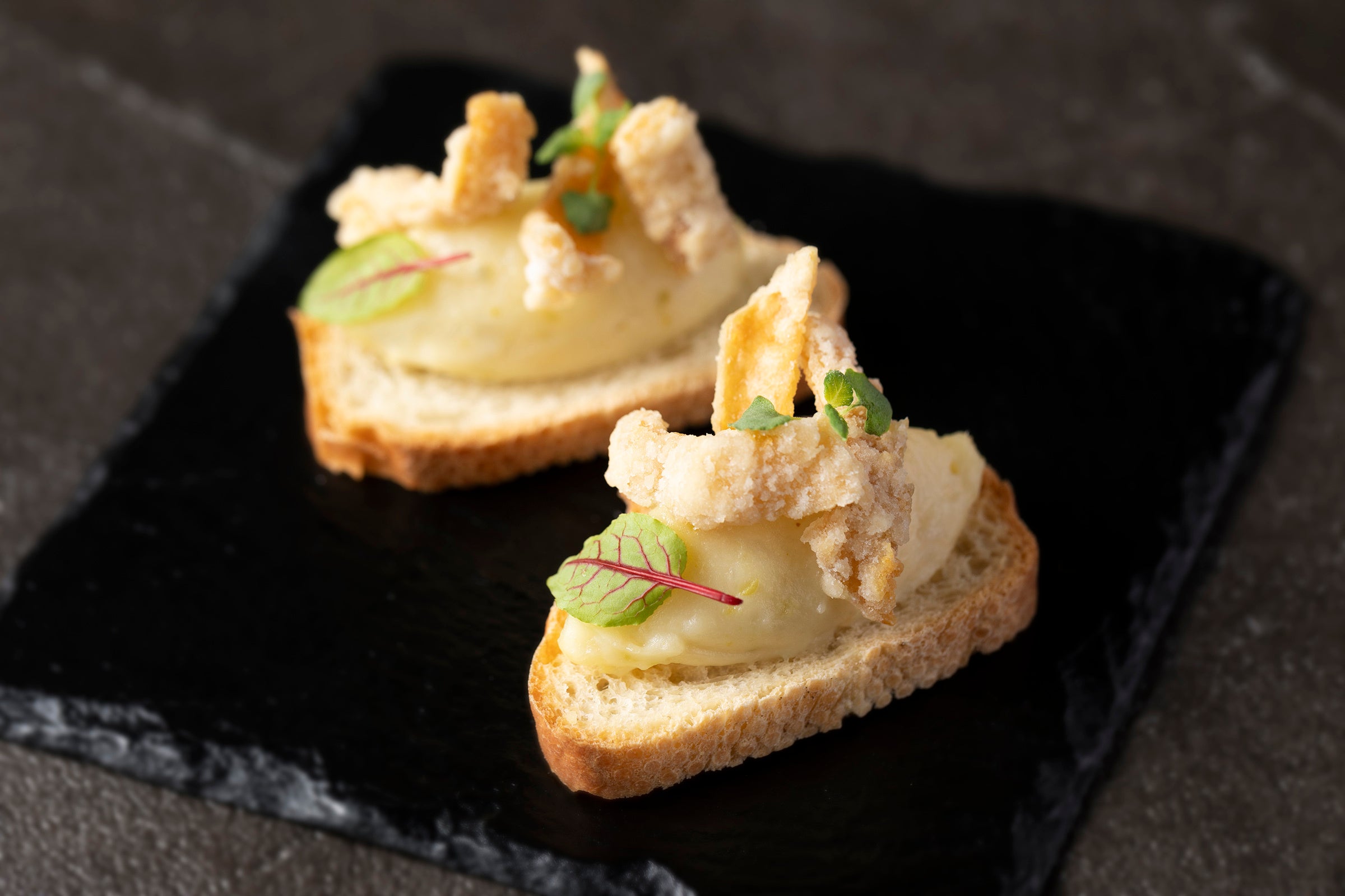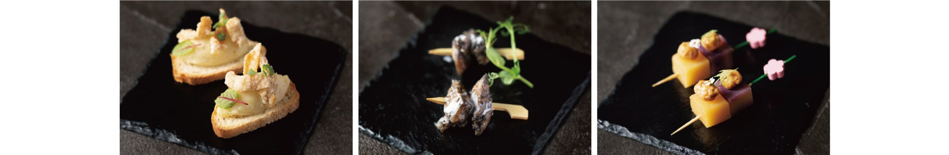 ・〈大分県〉かぼす胡椒と鶏皮のブルスケッタ ・〈宮崎県〉赤鶏炭火焼ヨーグルトと蜂蜜のクーリ