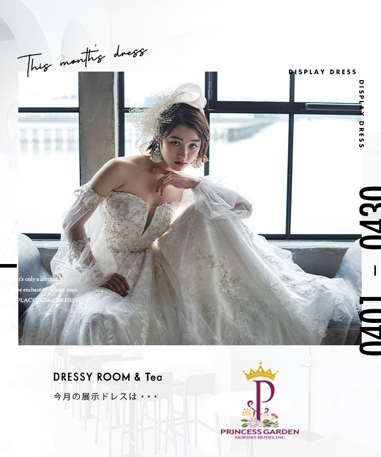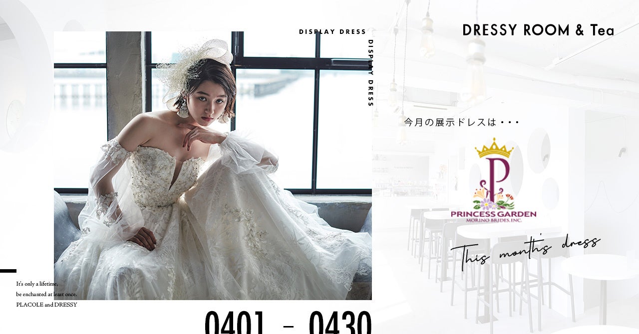 【DRESSY ROOM&Tea】4月のディスプレイドレスは『PRINCESS GARDEN (プリンセスガーデン)」のウェディングドレスを期間限定でお届けいたします。