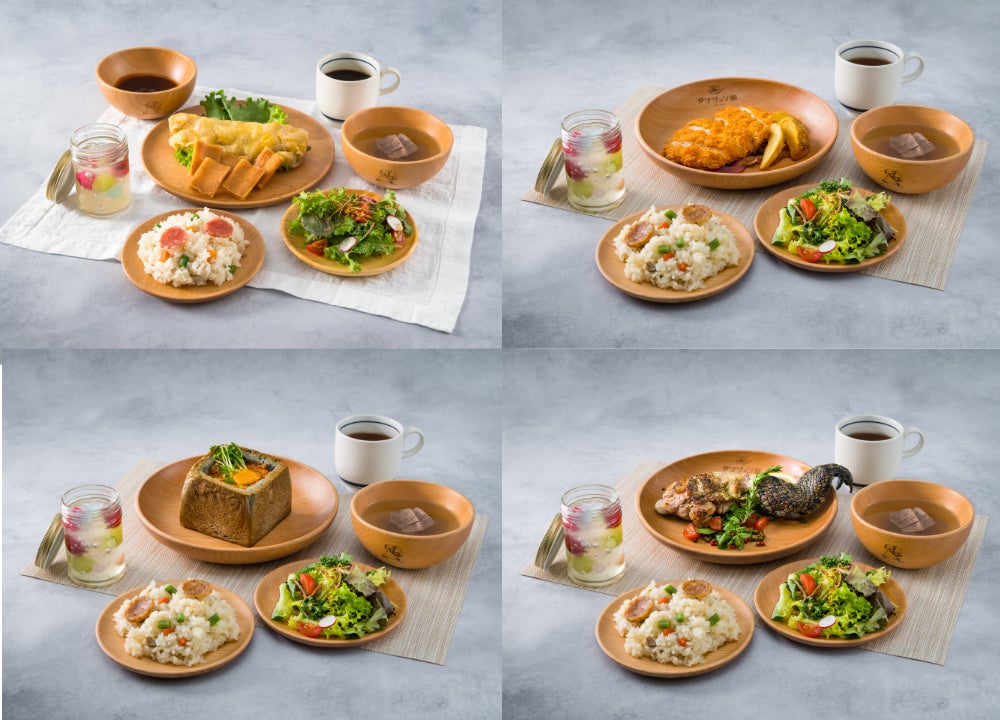 金土日祝日の夜時間帯限定で、前菜サラダ、メイン料理、主食、スープ、デザート、お飲みものがセットになった、4種類のコース料理をご用意。