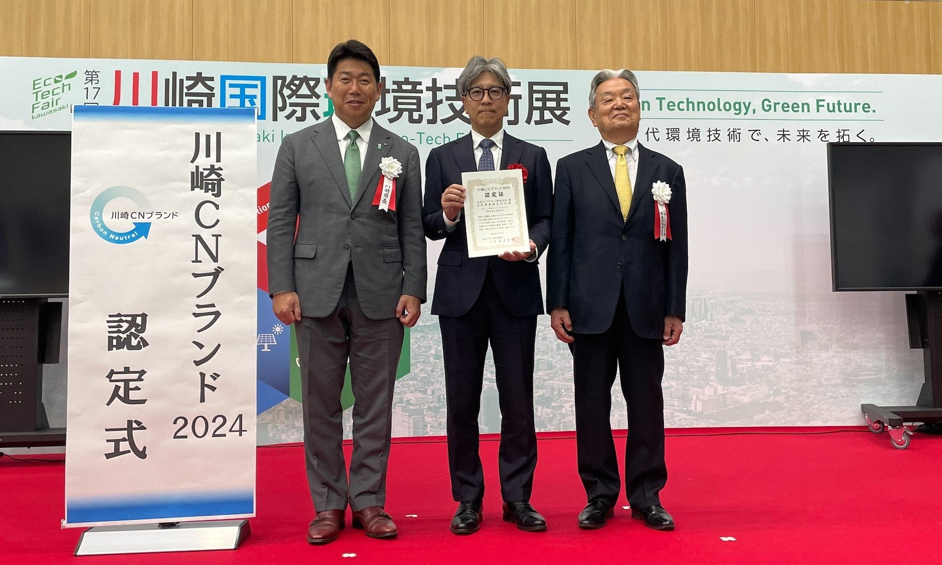 「川崎CNブランド」は、原材料調達から生産、流通・販売、使用、廃棄・リサイクルまでの製品ライフサイクル全体においてCO2排出量の削減が認められた、川崎発の製品・技術などを認定するものです。優れた製品や技術などを通じて、市民や事業者に脱炭素化への取り組みを波及させることを目的の一つとしています。