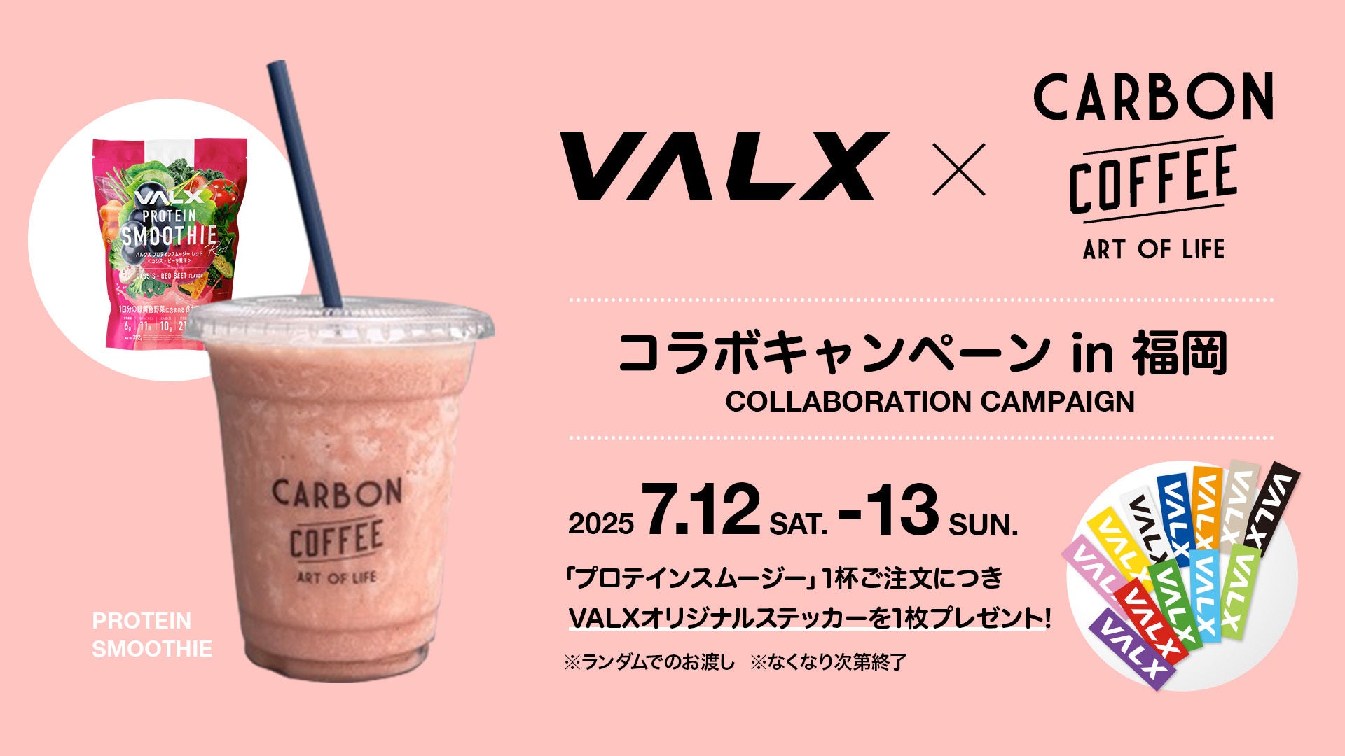 フィットネスブランド「VALX(バルクス)」を展開するVALX株式会社(本社:東京都渋谷区、代表取締役:只石昌幸、以下VALX)は、2025年7月12日(土)と7月13日(日)に、福岡にあるART・カルチャーを発信するコーヒースタンド兼ギャラリー「CARBON COFFEE // ART OF LIFE(カーボンコーヒー)」にて“プロテインスムージー”をご注文のお客様に「VALXオリジナルステッカー」を1枚プレゼントいたします。