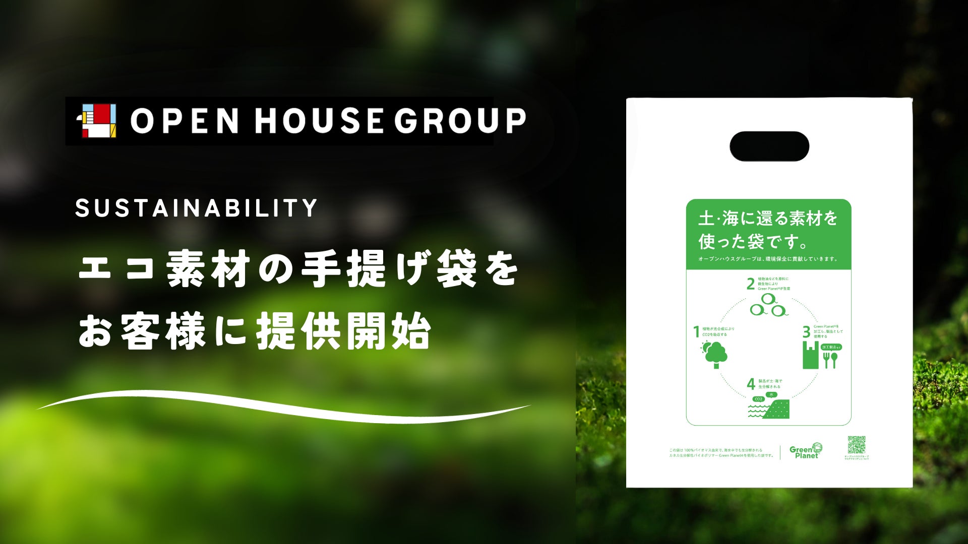 株式会社オープンハウスグループ(本社 東京都千代田区、代表取締役社長 荒井正昭、以下「当社」)のグループ会社である株式会社オープンハウスおよび株式会社オープンハウス・ディベロップメントは2024年3月より、全国の営業センター約70か所およびマンションギャラリーなどのマンション販売拠点と、契約後のお客様を対象とするおうちリンクのご入居相談会において、お客様が資料を入れてお持ち帰りになる袋として、100%バイオマス由来の素材を使った手提げ型の袋(以下「バイオマス手提げ袋」)の提供を開始しました。土壌中に加え海水中でも生分解される環境に優しい素材を使うことで、環境保全への貢献を進めます。
