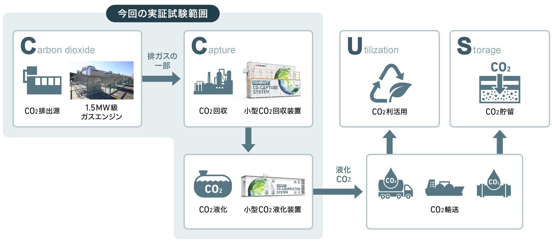 三菱重工業株式会社(以下、三菱重工)、三菱重工グループの三菱重工エンジン&ターボチャージャ株式会社(MHIET、社長:古殿 通義、本社:相模原市中央区)ならびに三菱重工冷熱株式会社(社長:岡野 伸泰、本社:東京都港区、以下、三菱重工冷熱)は、ガスエンジン設備から回収したCO2を液化する共同実証試験をこのほど開始しました。従来の排ガスからのCO2回収に加え、液化装置・技術の提供を通じてカーボンニュートラルに向けた取り組みを加速します。