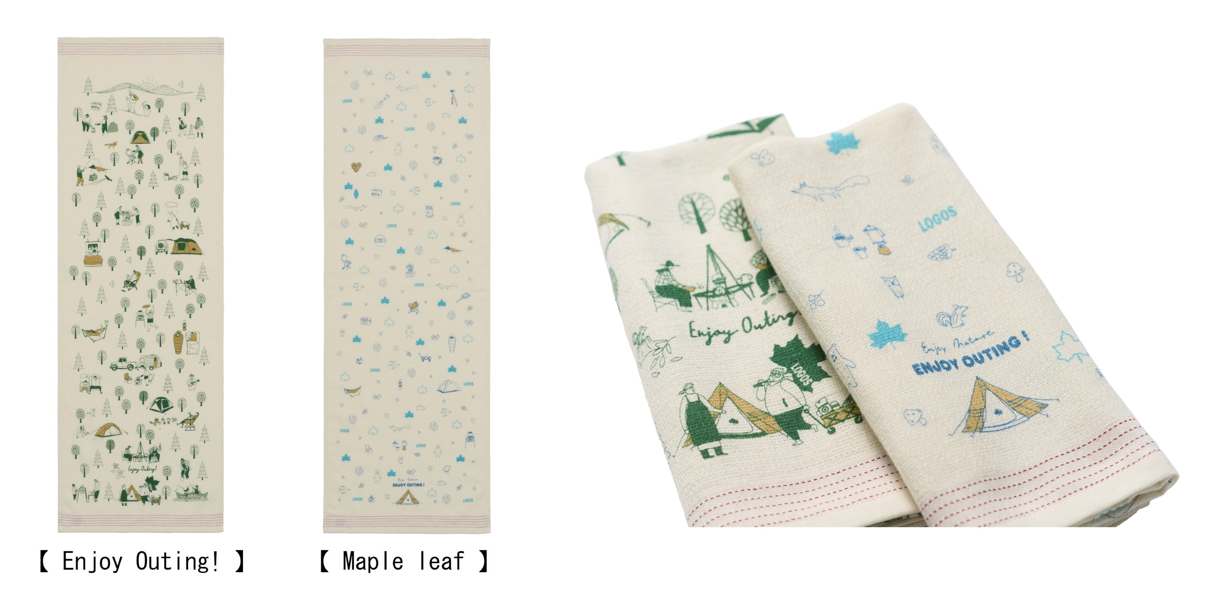 デザインは、LOGOSの合言葉をイメージして作られた「Enjoy Outing!」と、LOGOSのロゴであるメイプルリーフとアイテムを散りばめた「Maple Leaf」の2種を展開しており、洗い替え用として両方持っておくのもおすすめです。