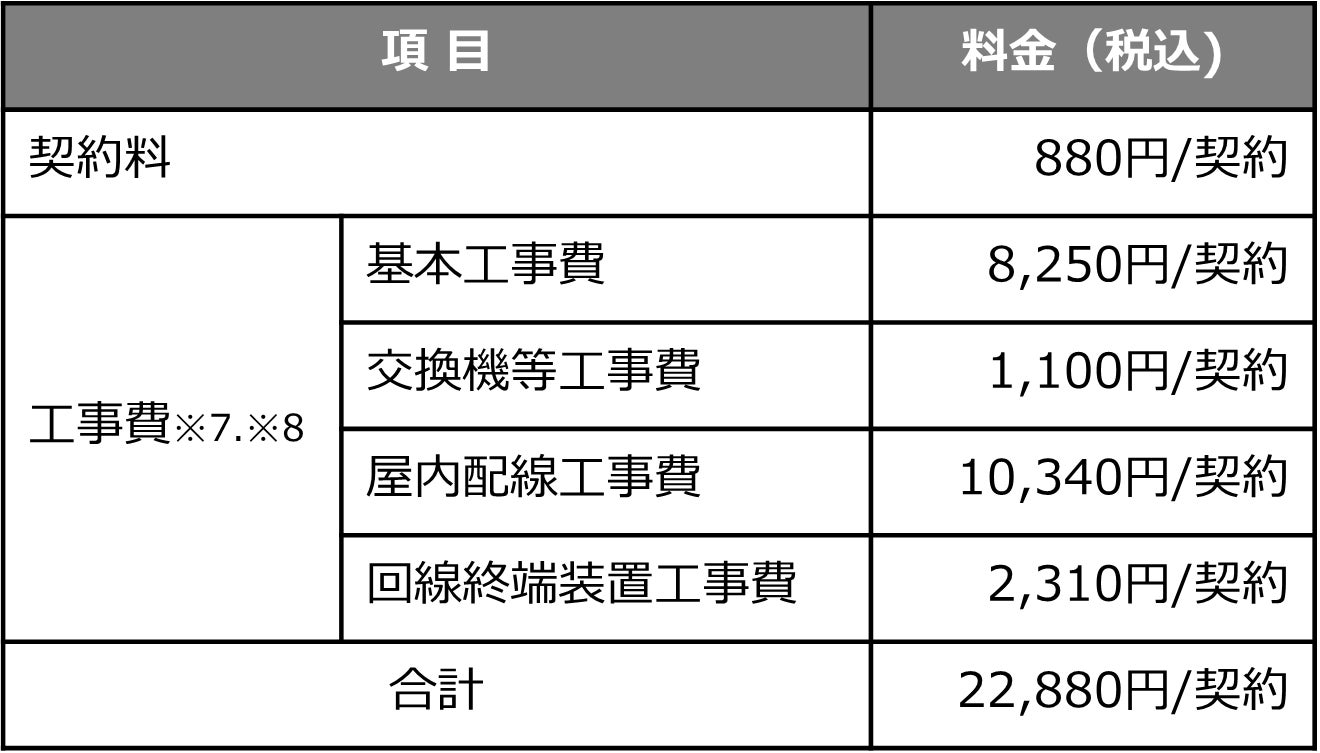 ※7 工事費は代表的な例です。工事の内容によって異なる場合があり、別途工事費が発生する場合があります。