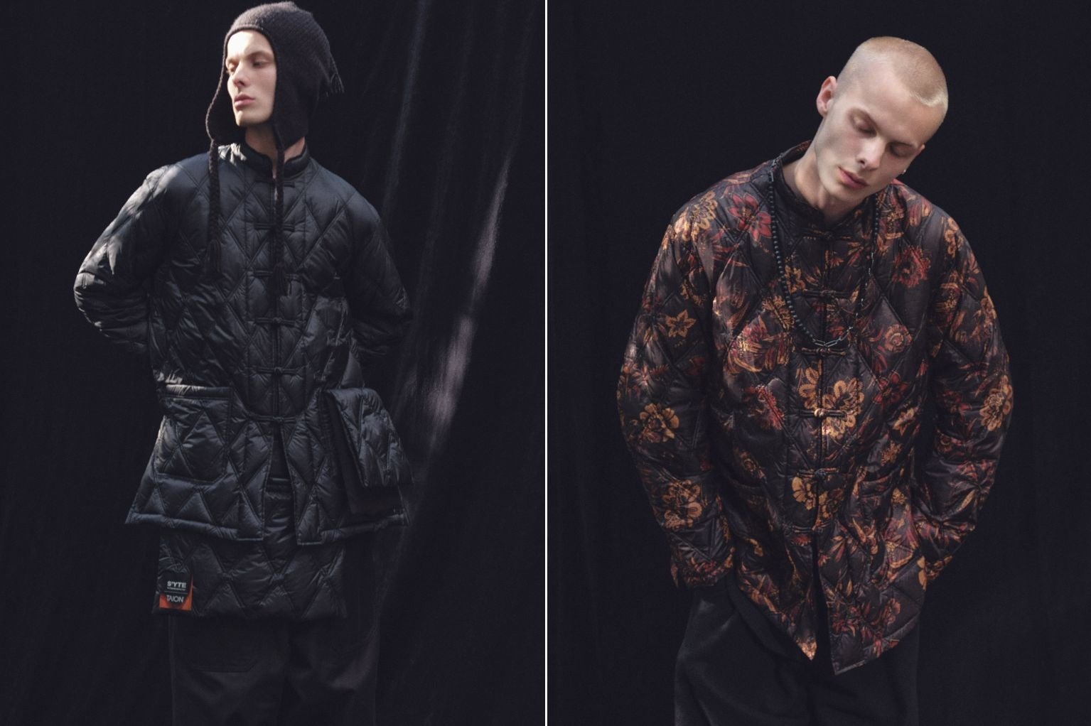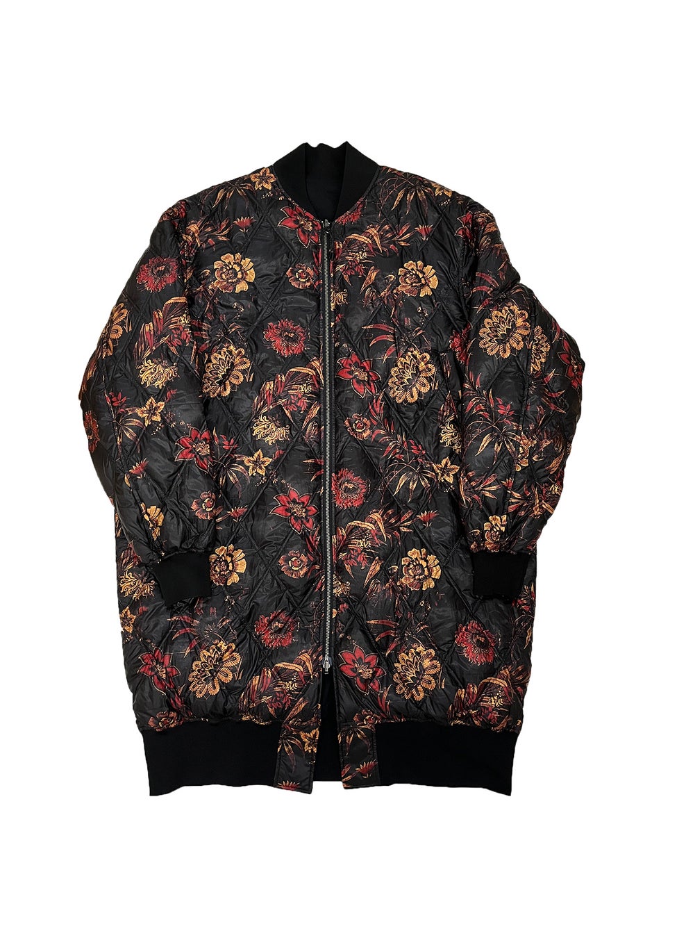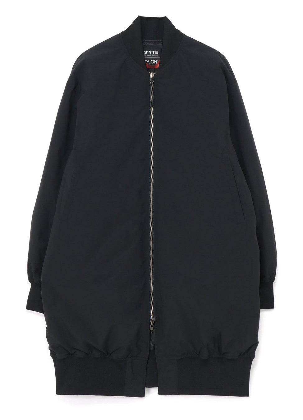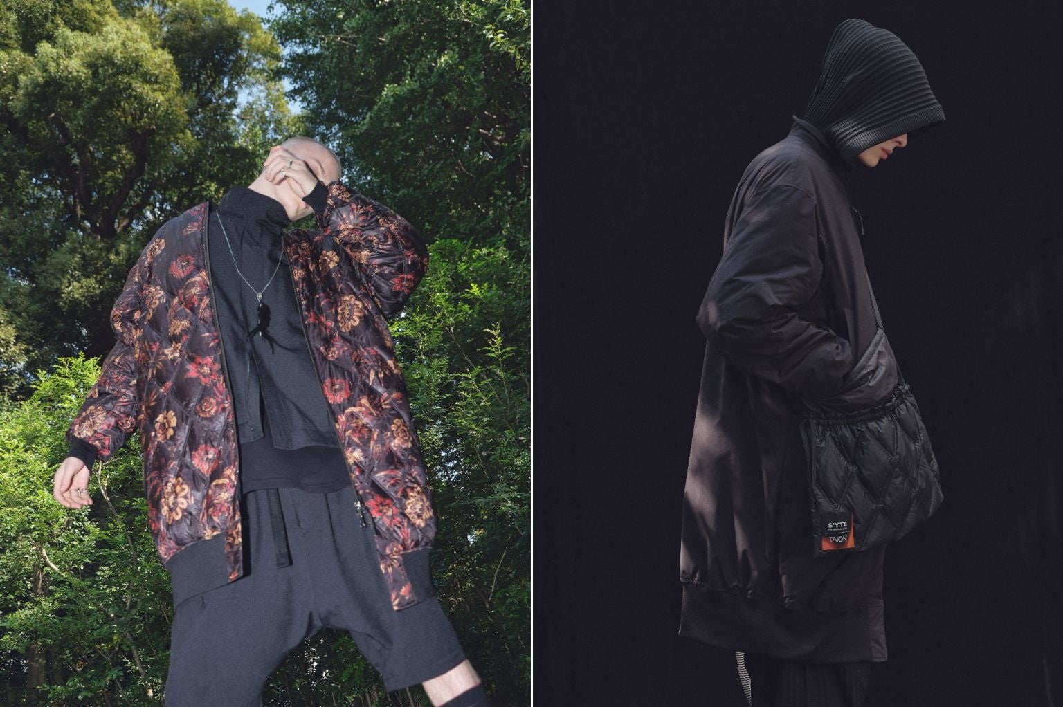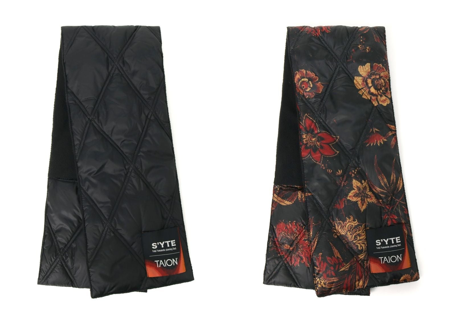 ボディにはS’YTEのベストセラーアーカイブのビッグシルエットのロングMA-1をアップデート。程よく肩線がドロップしたオーバーサイズに膝上まで伸ばした着丈はコートのようなシルエットバランスを構築したアイテムとなっています。S’YTEならではの美しくも毒のある赤と黄の色彩で描かれたダリヤやヤシのモチーフをシックに落とし込んだグラフィックと、TAIONのプロダクトを象徴するキルティング生地の2アイテムは、光沢を抑えて落ち着いた印象で着用できるリバーシブル仕様となっています。