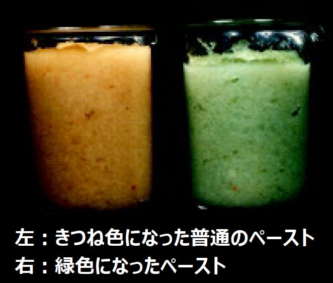 レトルトカレーの製造時にタマネギとニンニクを炒めると緑色に変色してしまう現象(緑変現象※7)が起こることがあり、製造工程のロスを削減するために、原因解明・解決の研究を始める。 研究の過程で、それまでに唱えられていた定説ではタマネギが涙の出る成分を作るための仕組みを説明できないことに気づく。 ※7 緑変現象とは・・・ タマネギとニンニクを炒める際に、通常、炒めたものはきつね色になるが、ある条件がそろうと緑色になってしまう現象のこと。 |