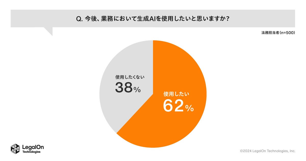 今後生成AIを業務で使いたいと答えた法務担当者は6割超。