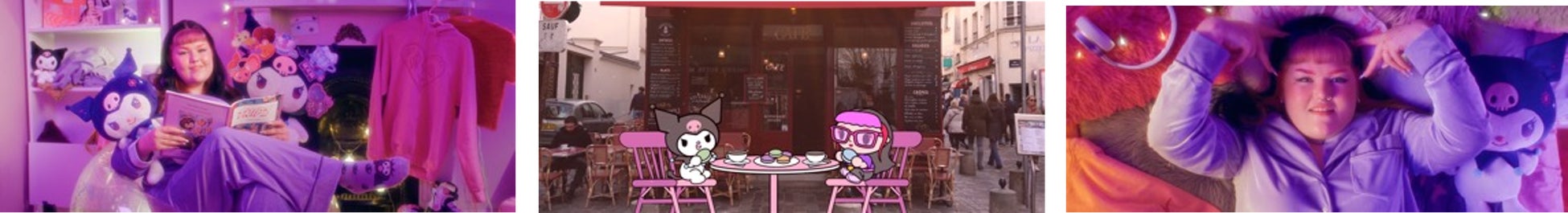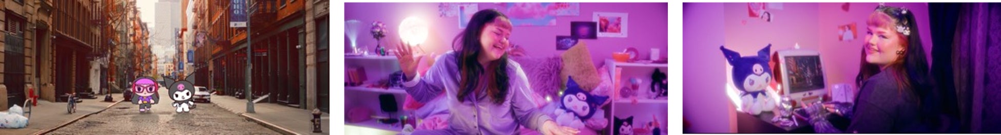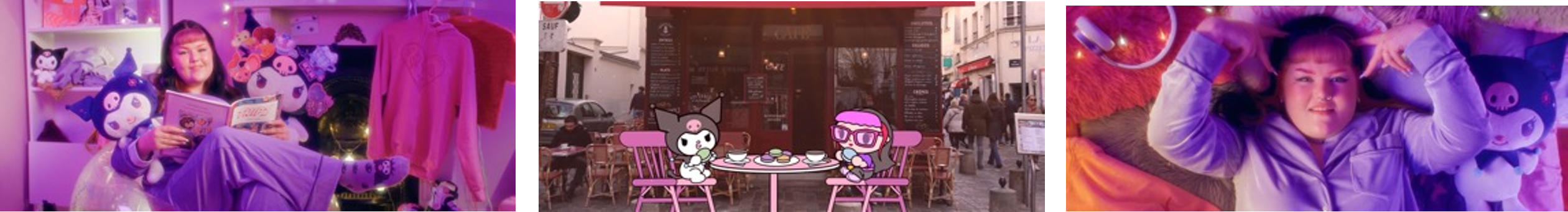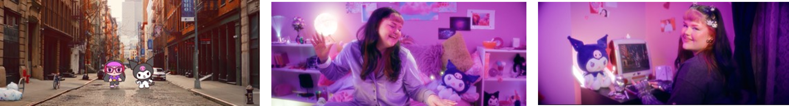 本日、クロミ公式YouTubeチャンネルで「Cheeky But Charming feat. KUROMI」の楽曲MVを公開します。ピンク色に囲まれたベッドルームから始まるMVでは、クロミとメイ・スティーブンスの二人が「なりたい自分」を探しに世界中を旅する様子をポップに描いています。