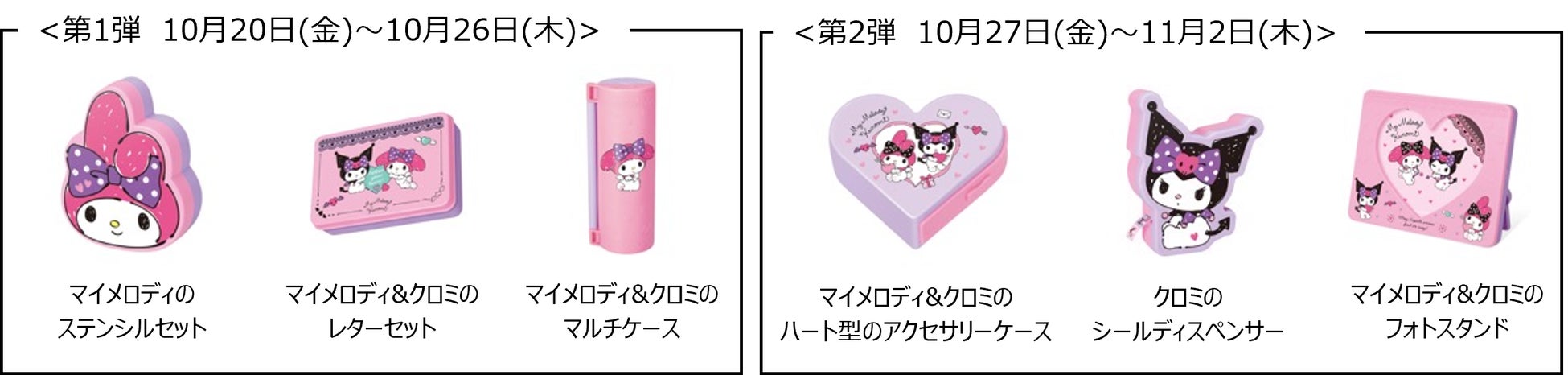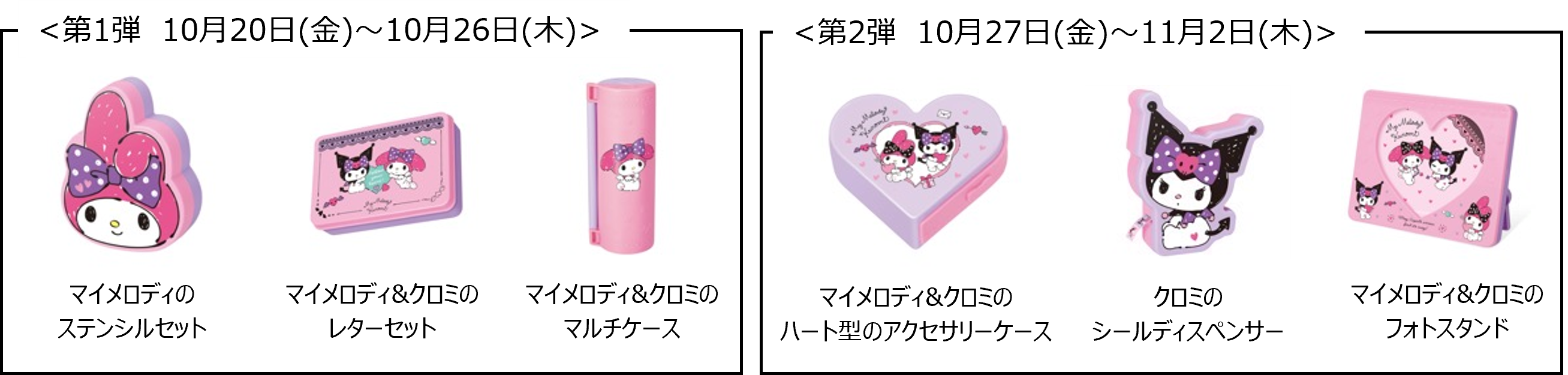 全国のマクドナルド(一部店舗除く)にて、10月20日(金)から期間限定でハッピーセット「マイメロディ&クロミ」を販売いたします。クロミとマイメロディをモチーフにした全6種類のおもちゃが登場します。第1弾は、お絵かきやお手紙遊びを楽しめる「マイメロディ&クロミのレターセット」などが、第2弾は「クロミのシールディスペンサー」などのシールを使ったデコレーションが楽しめるグッズがラインナップしています。