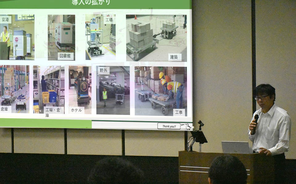 大島氏は、協働運搬ロボットの導入が中小企業にとっても現実的な選択肢であることを実例と共に紹介しました。同社の製品は「段階的に導入できる柔軟性」と「現場にフィットする設計」が特長で、特に人手不足や高齢化が進む業界において、日常の運搬業務をロボットで自動化することが大きな効果をもたらすと説明。さらに、ロボットの活用は大規模な設備投資を必要とせず、小さく始めて徐々に展開できる点も多くの企業に評価されていると述べ、DX導入の第一歩としての有効性を訴えました。