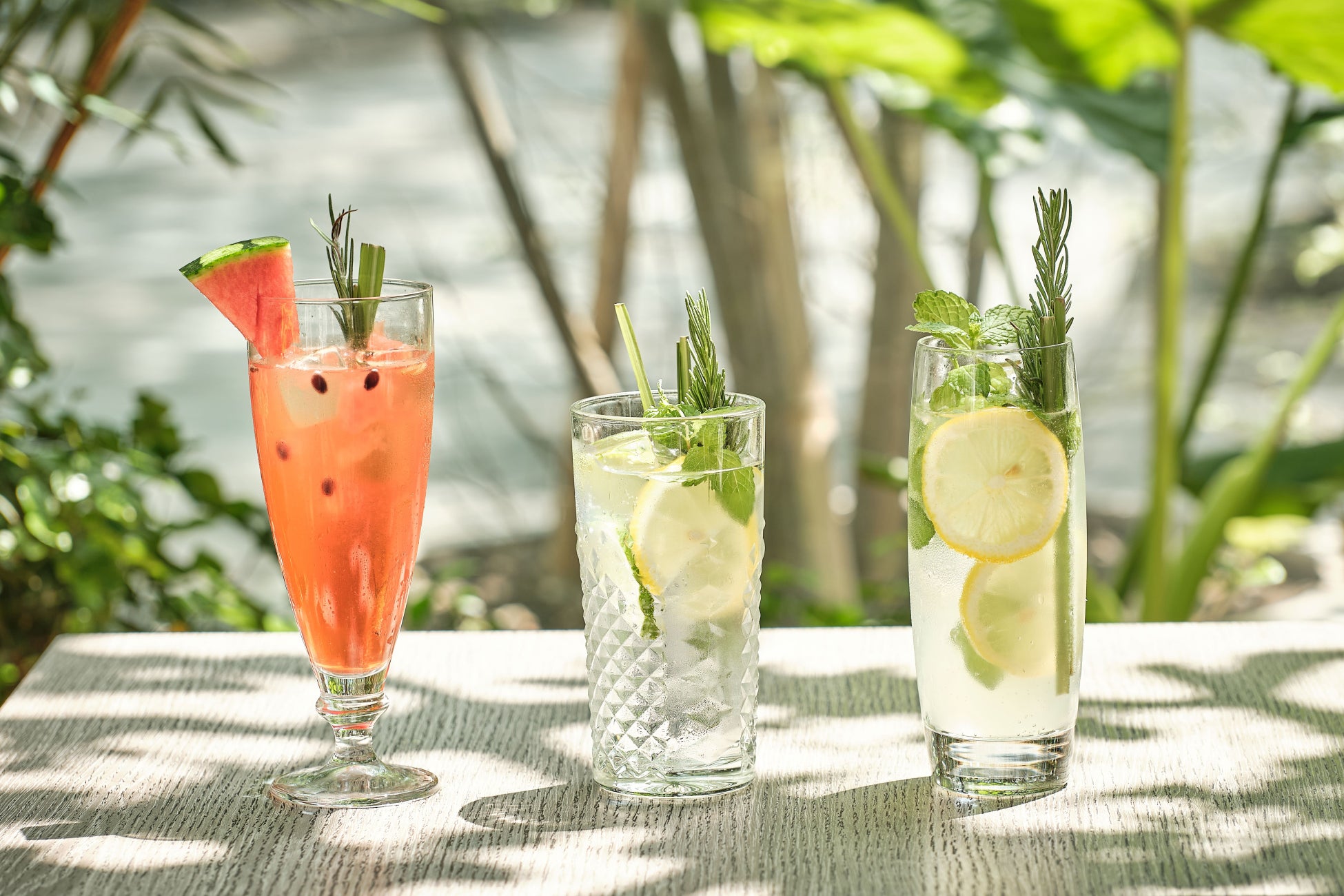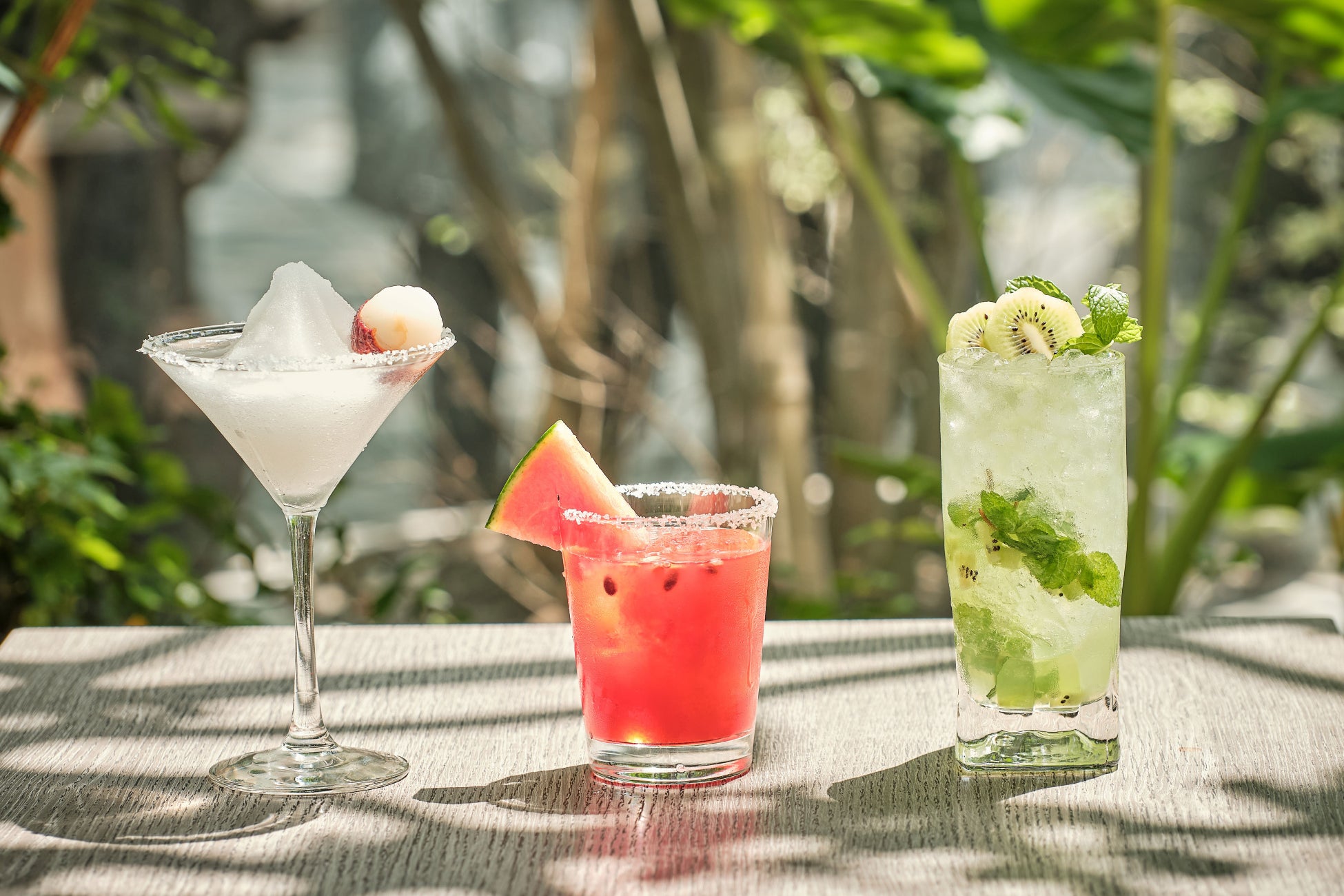 ノンアルコールジンを使用したモクテルや、スイカ、ライチなどのサマーフルーツカクテル