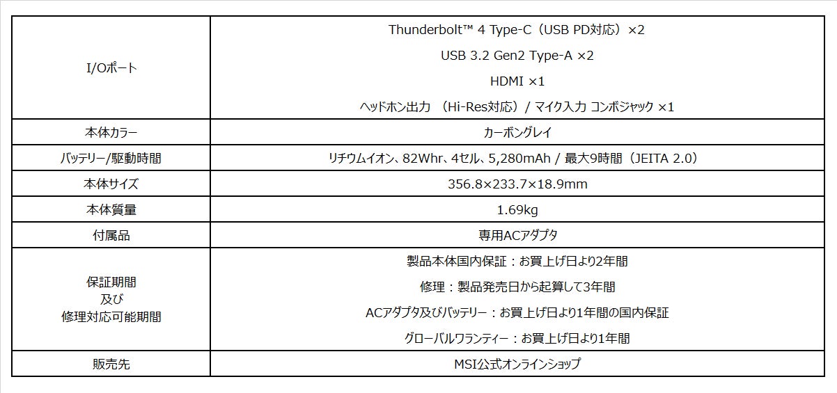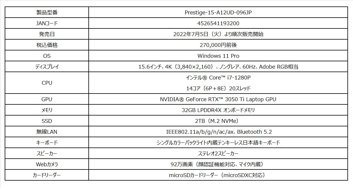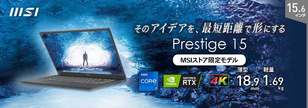 パワフルさと持ち運びやすさの両立を追求したビジネス・クリエイターノートPC MSIストア限定モデル「Prestige-15-A12UD-096JP」発売