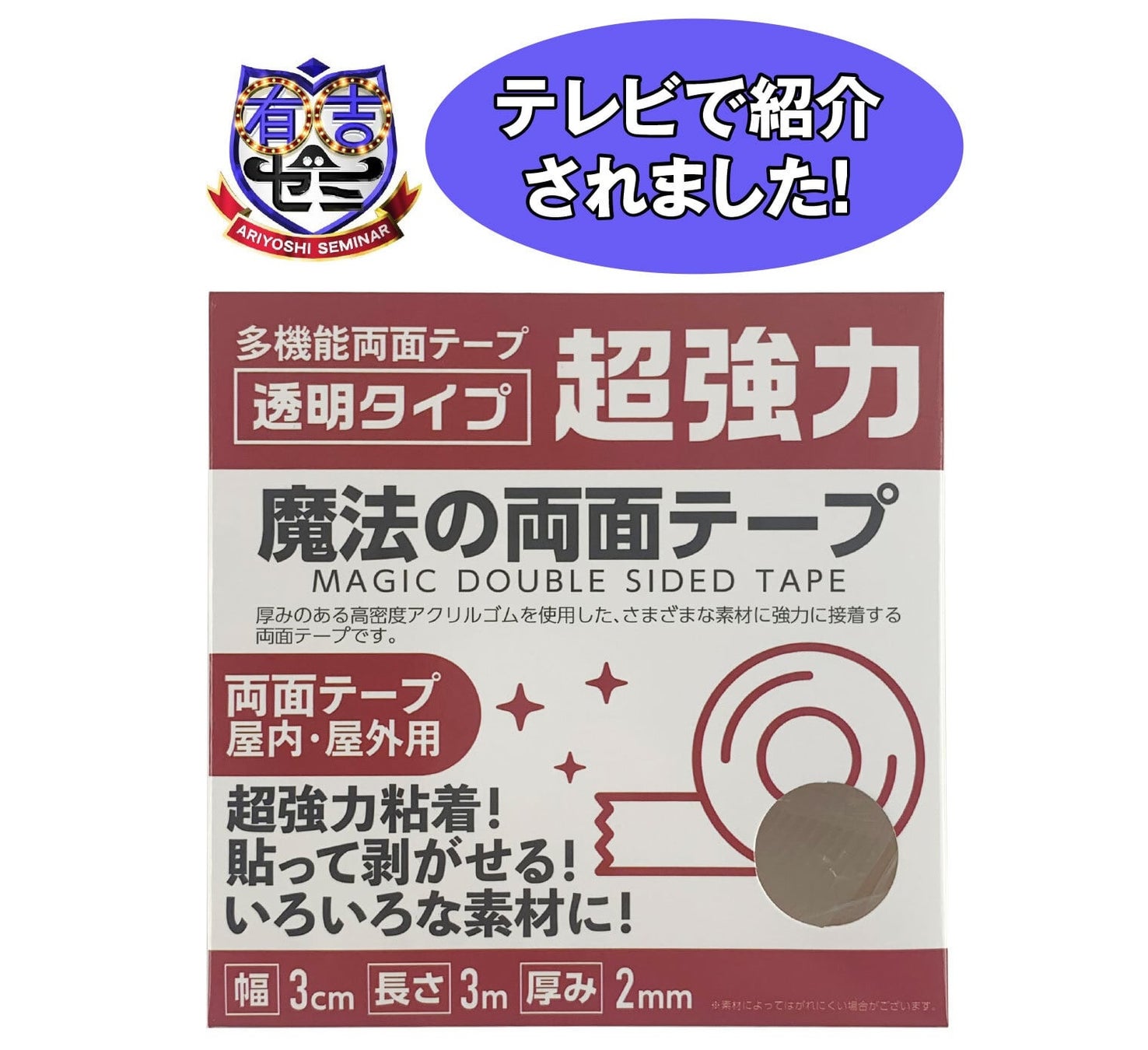 テレビで紹介された【洗って再利用可 】超強力両面テープが本日販売開始します。