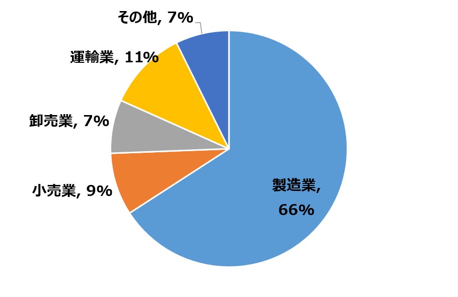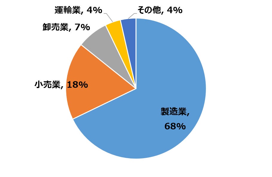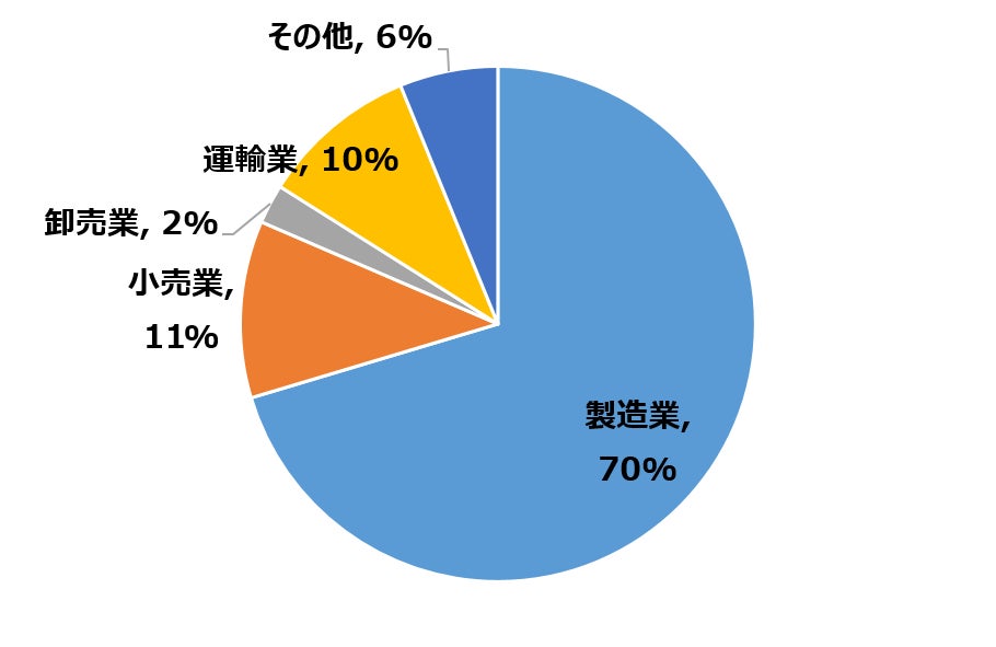 • 製造業の割合が高く、全体の約70%を占めている