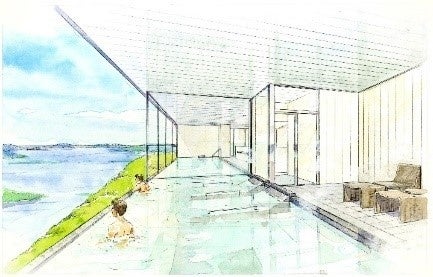 香川県の代表的な観光スポットである父母ヶ浜をオマージュした「水鏡のテラス」をはじめ、瀬戸内海を一望する大浴場には露天風呂と内湯の全長15mの浴槽が誕生します。また、好評いただいている和洋室は20 室増室。そのうち2 ルームは約100 ㎡でソロサウナや半露天風呂、テラス付きのプレミア感たっぷりのお部屋です。