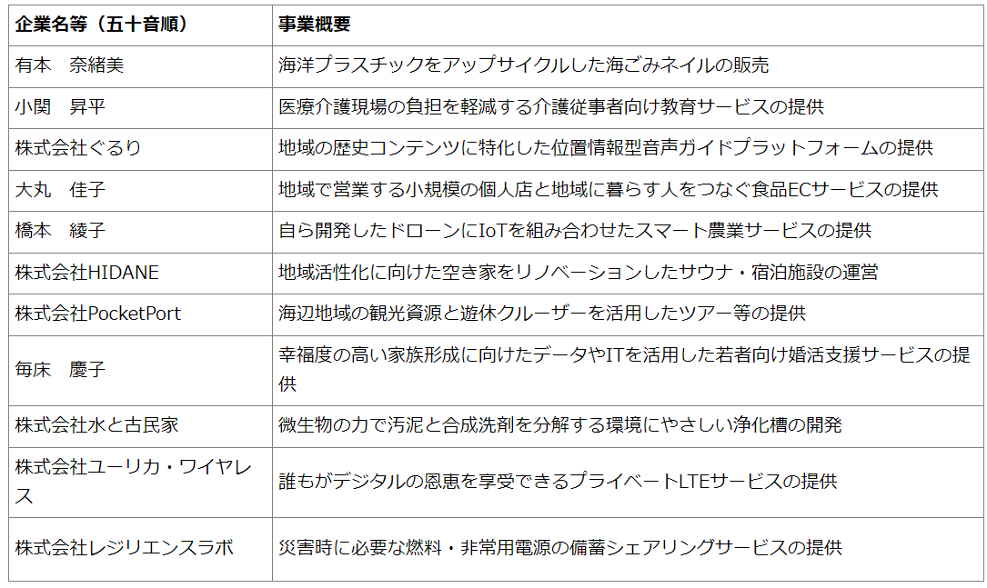 ※ベンチャー企業は企業名、起業準備者は氏名を記載しています。