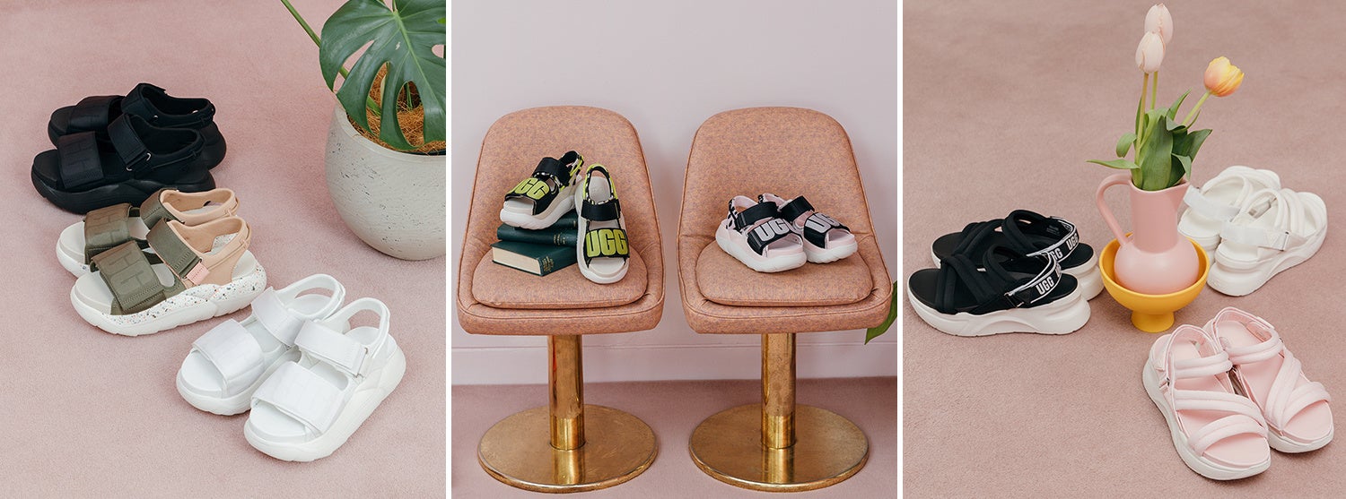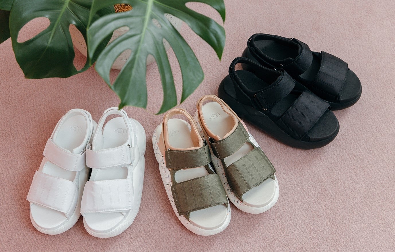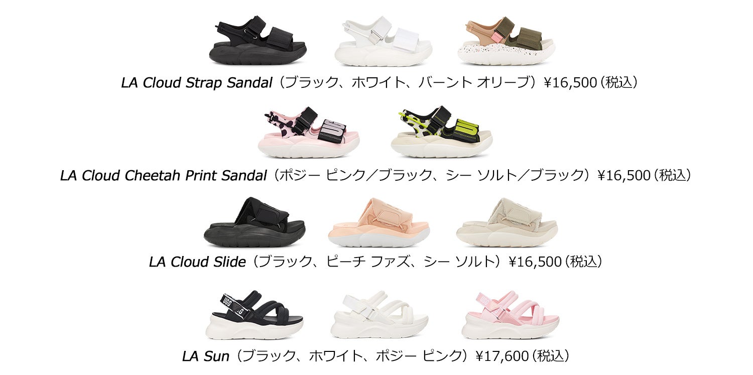 Tokyo ( 2022年4月26日) –南カリフォルニアを拠点とするグローバルライフスタイルブランドのUGG (a division of Deckers Brands [NYSE: DECK])は、アイコニックなUGGのDNAを受け継ぐファッション性の高いデザインをフィーチャーした2022春夏の新作サンダルコレクションを発表します。UGGブランドのルーツに忠実でありながら、個性もしっかりと主張する汎用性の高いスタイルが揃っています。LA Cloud Strap Sandal(LA クラウド ストラップ サンダル)やLA SUN(LA サン)は、スニーカーとサンダルを融合させたスポーツサンダルで、UGGで人気急上昇中のスニーカーコレクションと同様、厚底で足長効果がありながらも、軽くてクッション性が高く履き心地抜群!LA Cloud Strap Sandalは、まるで雲のように軽くてふわふわの履き心地が特長のLA Cloudコレクションの新作。調節可能な面ファスナー付きストラップで、より安全でカスタマイズしたようなフィット感にアップデートしたサンダルです。チーター柄のLA Cloud Cheetah Print Sandal(LA クラウド チーター プリント サンダル)やストラップのないスライドサンダルのLA Cloud Slide(LA クラウド スライド)も登場。LA SUNは、アッパーストラップに弾力性のある中綿の入ったパデッドストレッチジャージー素材を採用した面ファスナー仕様のゴムストラップなので、よりソフトに足にフィットし、LA Daze、LA Flexスニーカーや LA Shoreサンダルと同じゴム付きEVAアウトソールのサンダルです。どのラインナップも足全体を包み込むクッション性が他のサンダルにはないUGGならではの履き心地をもたらします。