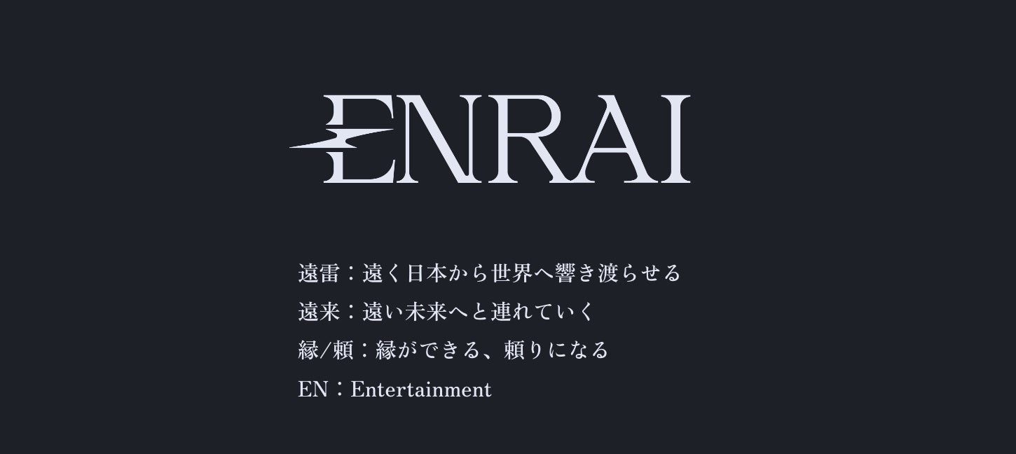 「ENRAI」は、遠く日本から世界へ響き渡らせるという意味の「遠雷」、遠い未来へと連れて行く「遠来」、縁ができる・頼りになる「縁・頼」、Entertainmentの「EN」を組み合わせた造語です。