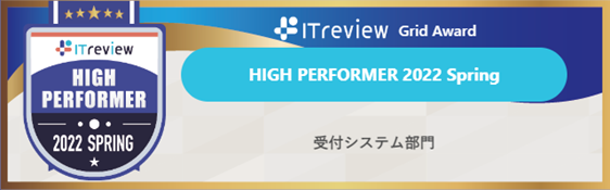 「ITreview Grid Award」とは、ITreviewに投稿されたレビューをもとに四半期に一度ユーザーに支持された製品を表彰する場です。今回は2022年3月までに集まったレビューをもとに評価ポイントが集計され、「Smart at reception」の顧客満足度が高かったことから「High Performer」が表彰されました。