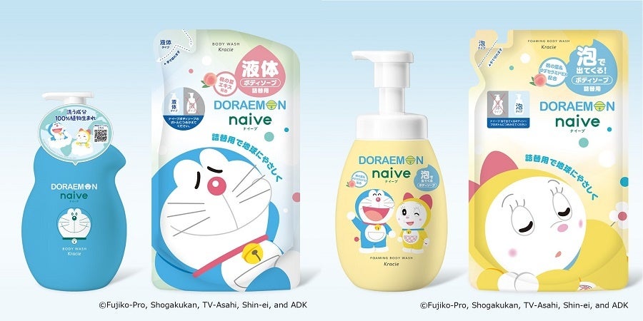クラシエ株式会社(ホームプロダクツカンパニー)は、洗う成分100%植物生まれの「ナイーブ」ボディソープから、国民的人気キャラクター「ドラえもん」の限定デザイン商品を、2024年3月1日(金)に数量限定で発売いたします。