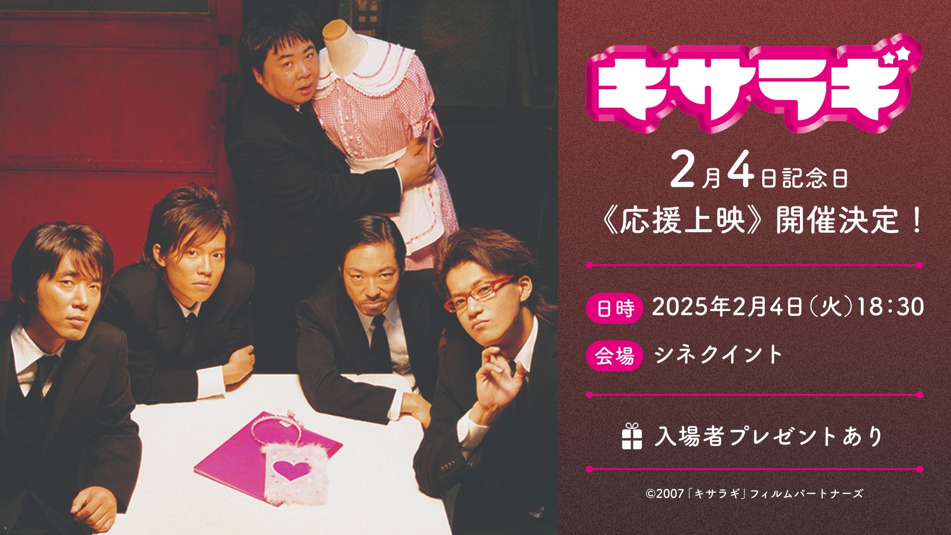 2月7日(金)より、全国リバイバル上映の映画『キサラギ』にて、全国リバイバル先行上映として、『キサラギ』の記念日である2月4日に”応援上映”の開催が決定しました。