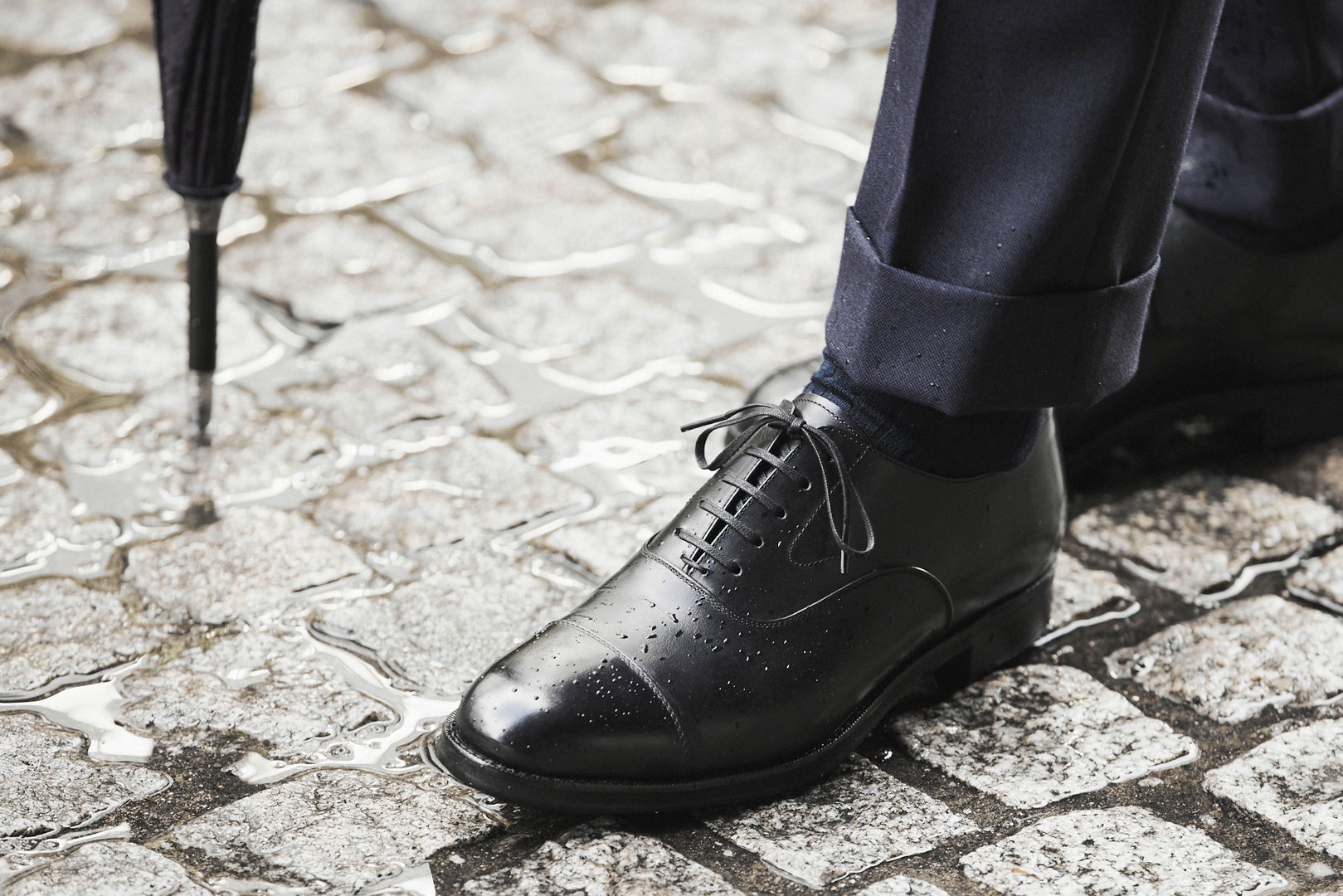 革靴にとって最大の敵ともいえる雨。アッパーが濡れると水ジミや品質劣化の原因になるだけでなく、レザーソールの靴は底から徐々に水が染みて不快感の元になります。これらのストレスをなくす万能なシリーズです。