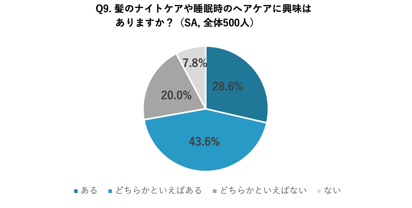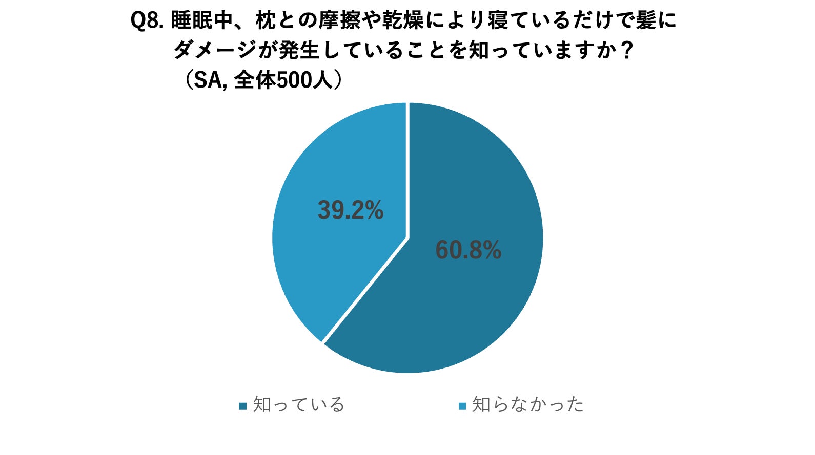 - 3人に2人が寝ているだけで髪にダメージが発生していることを知っていると回答。しかし、実際に睡眠時のヘアケアを行っている人は全体の約20%にとどまることが判明。