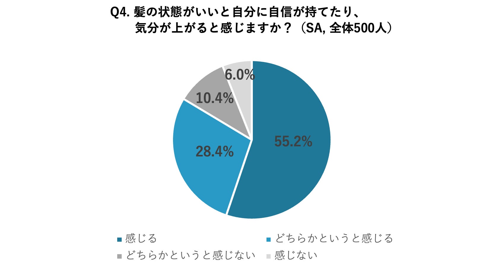 さらに、約8割を超える人(83.6%)が、髪の状態がいいと自分に自信が持てると回答。髪が女性の自己肯定感に大きな影響を与えているということが結果からうかがえます。