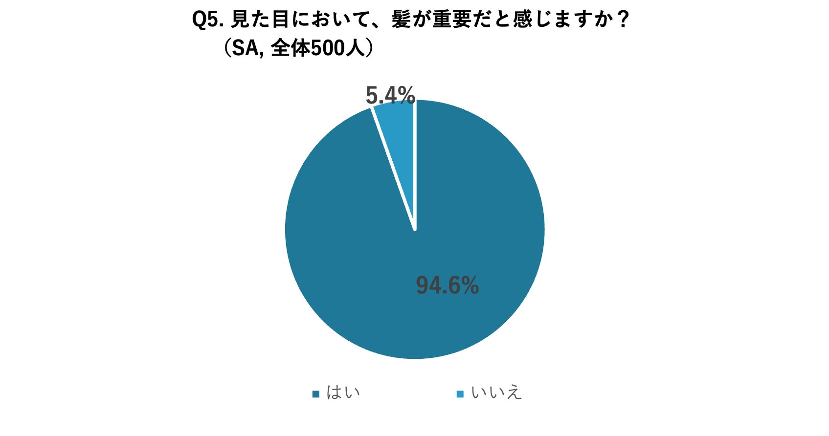 - コロナによりマスクが必須の今、見た目において髪が重要だと考える人は全体の約95%という一方で、髪のケアが満足にできていると回答した人はほとんどいない(7%)ことが判明。