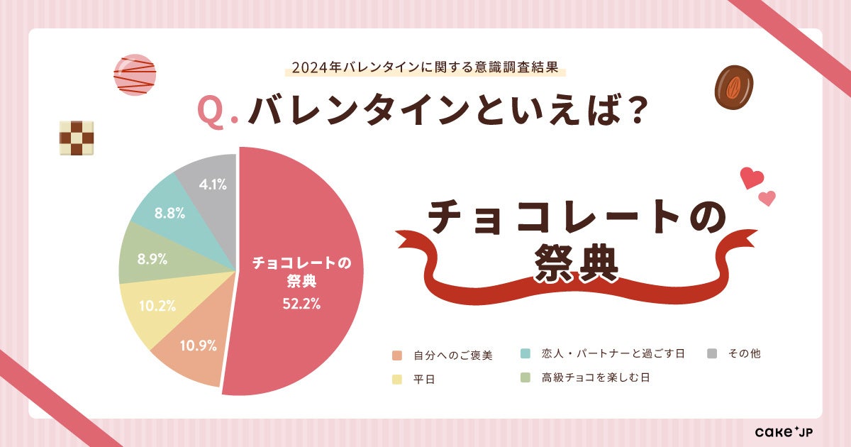 【Cake.jpバレンタイントレンド調査結果発表】バレンタイン最新事情!バレンタインと言えば「本命と過ごす日」より「チョコレートの祭典」というイメージにシフト!