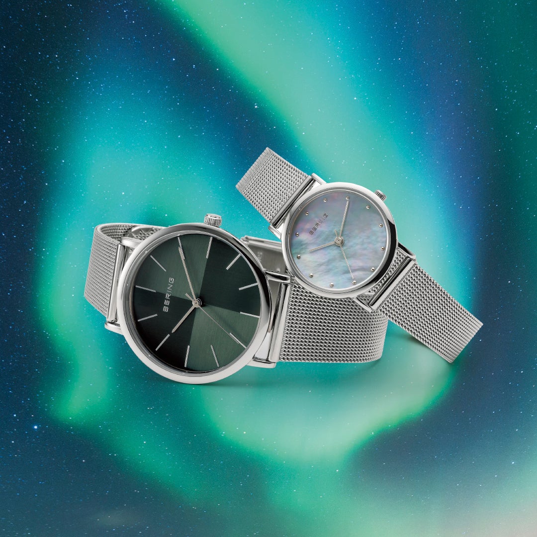 どこまでも純粋でクリーンな北極の大自然からインスピレーションを得て誕生したBERING。北極の空に広がる神秘的な光のカーテン「オーロラ」を表現した日本限定のコレクション「ノーザンライツ」は、1年に1度その年だけの特別なデザインを発表しています。