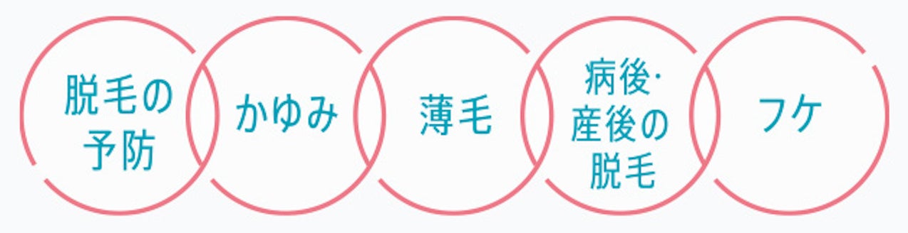 大人の頭皮の悩み(脱毛の予防、かゆみ、薄毛、病後・産後の脱毛、フケ)を5つの有効成分※1がアプローチ。